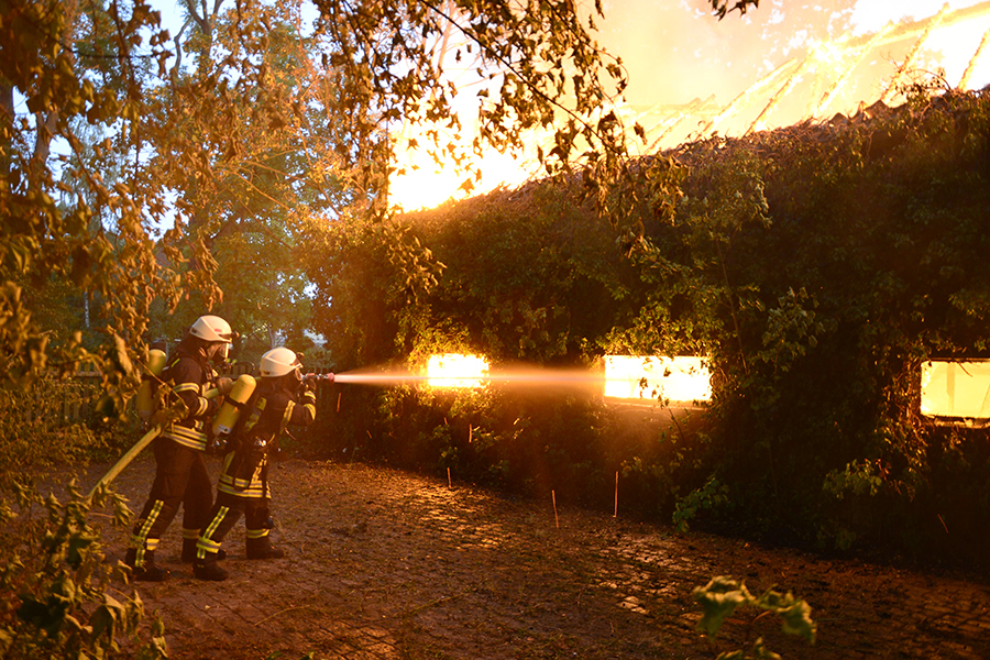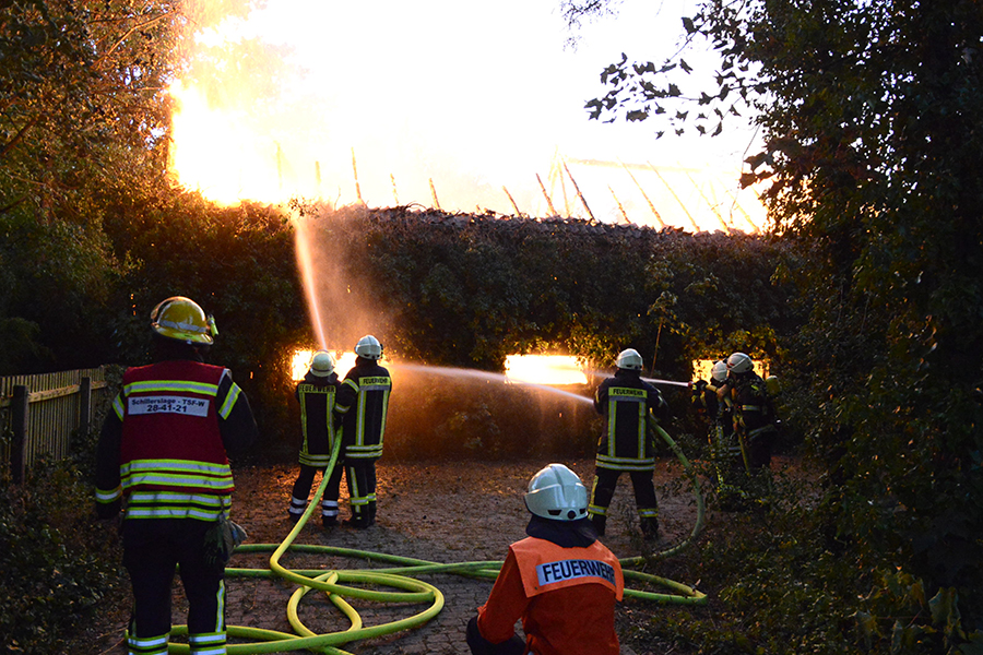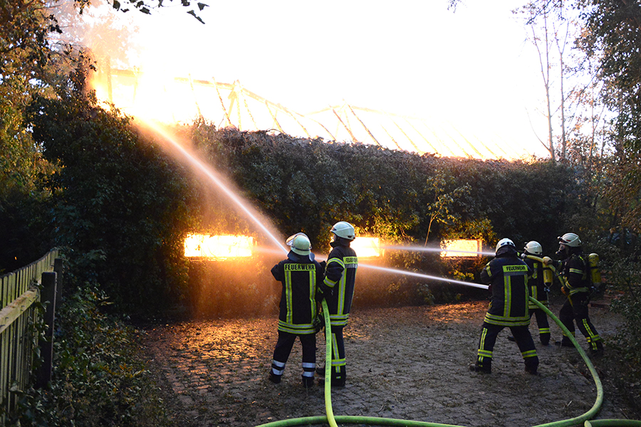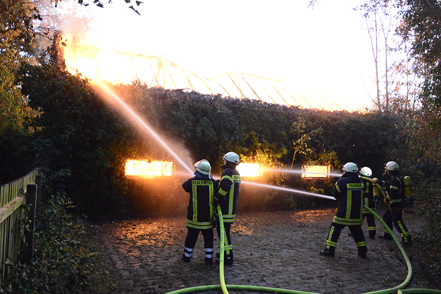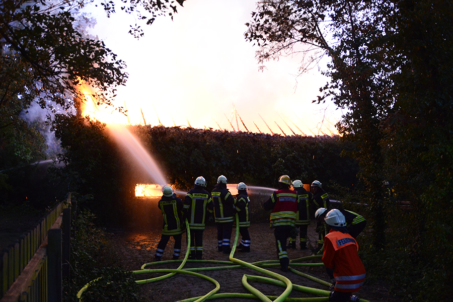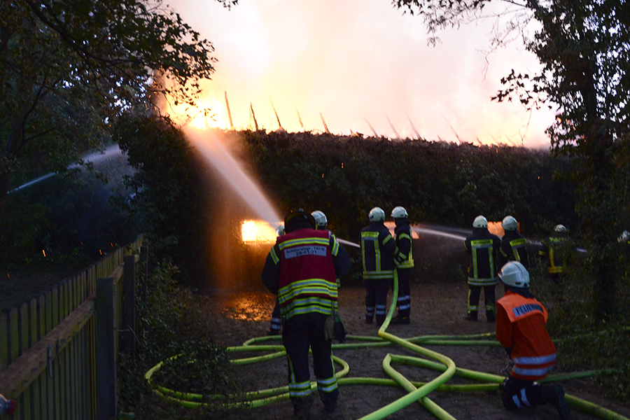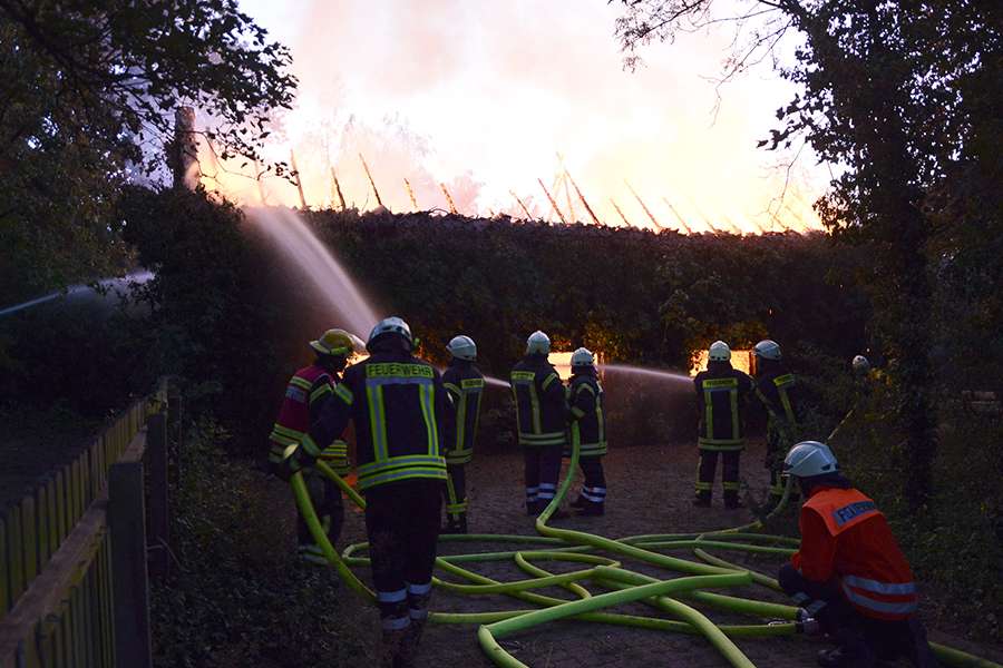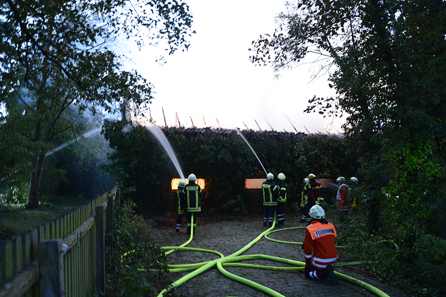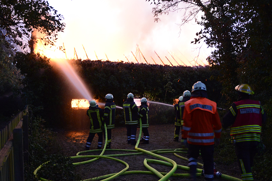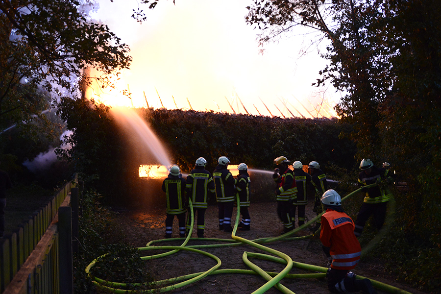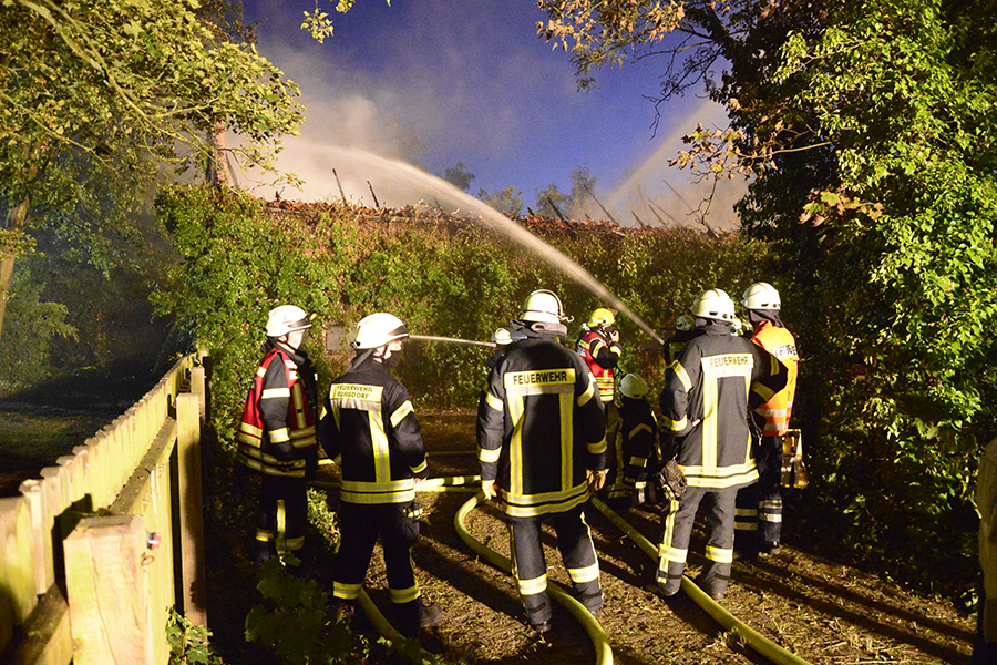Mit insgesamt sechs C-Rohren und einem B-Rohr gingen die Feuerwehrkräfte vor. / Foto: Bastian Kroll