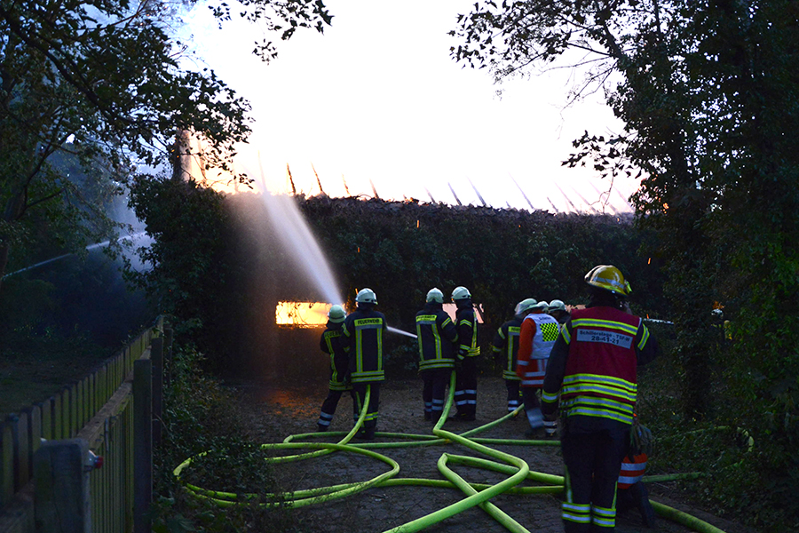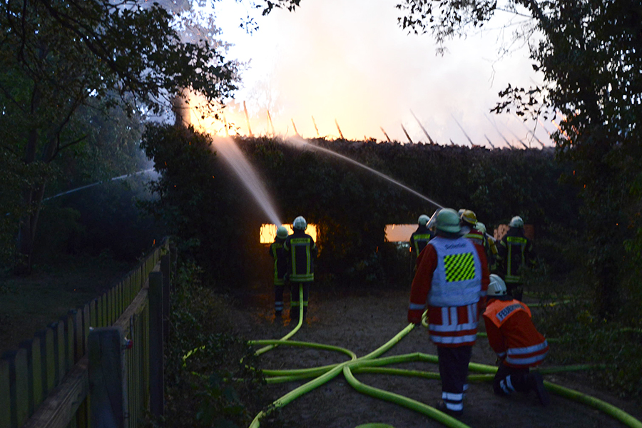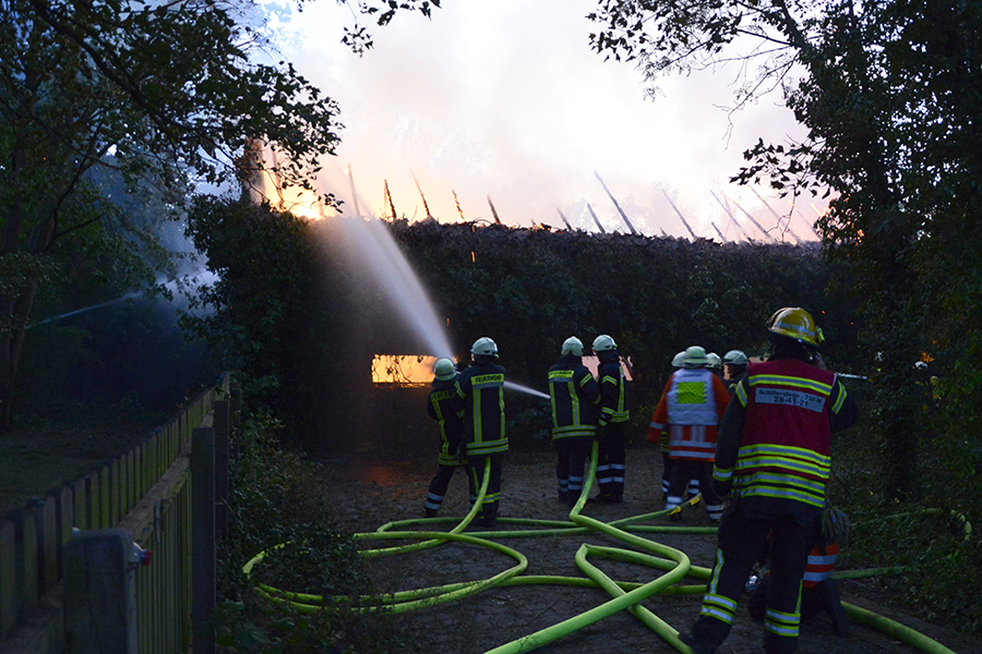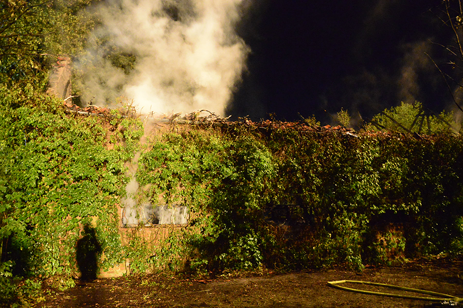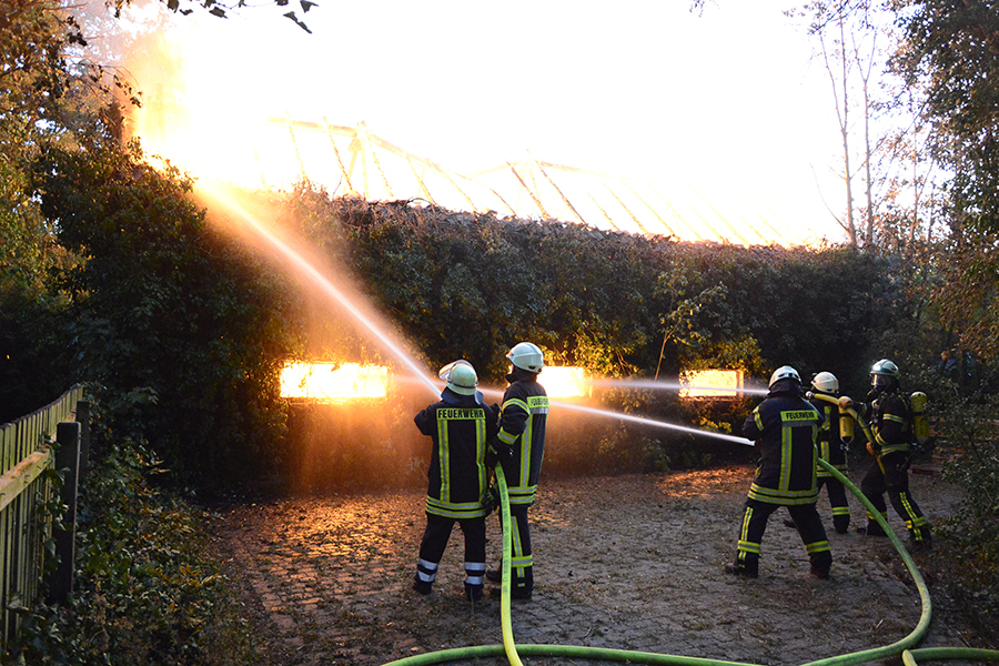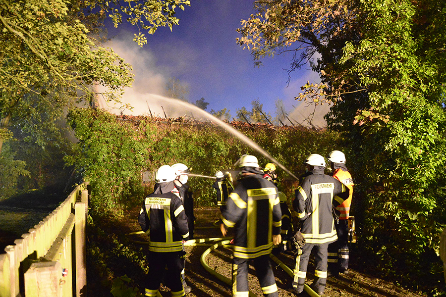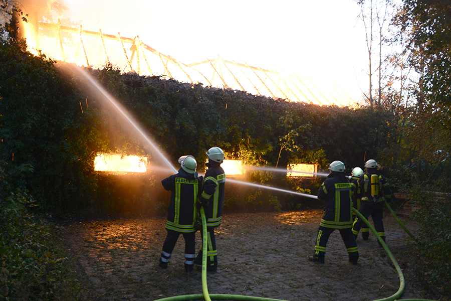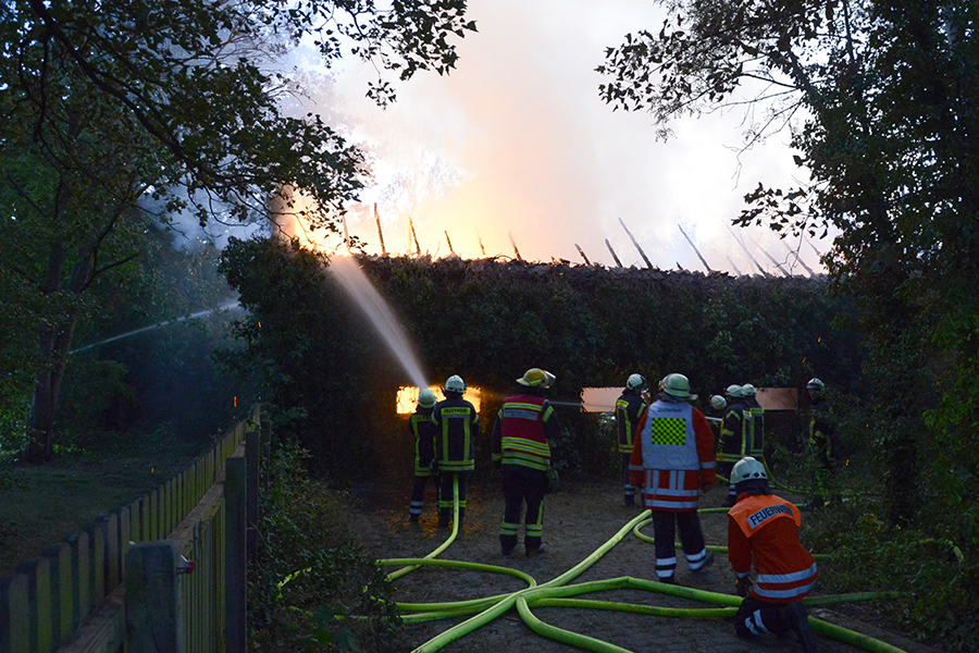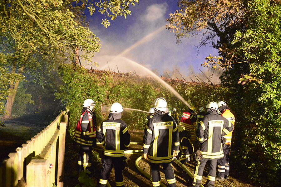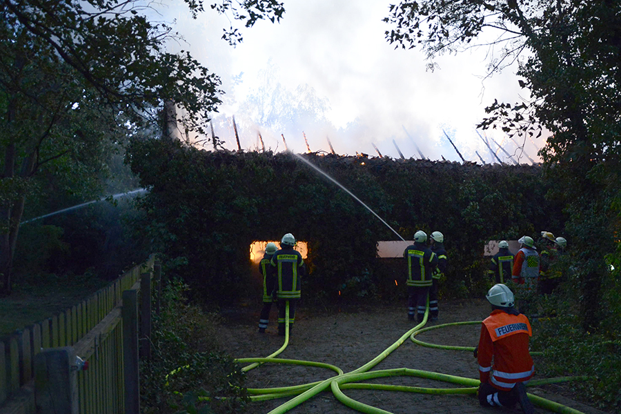 Sechs C-Rohre und ein B-Rohr der Drehleiter kamen unter der Leitung von Burgdorfs Ortsbrandmeister Florian Bethmann zum Einsatz. Nach rund einer Stunde war das Feuer weitestgehend eingedämmt, Bäume des anliegenden Friedhofs konnten vor den Flammen geschützt werden. Das Gebäude selbst brannte komplett aus. Nach zwei Stunden waren keine Flammen mehr vorhanden, allerdings befanden sich noch weitere Glutnester in dem Gebäude, in dem sich unter anderem Stroh und Unrat befanden. Die Nachlöscharbeiten dauern derzeit noch an.