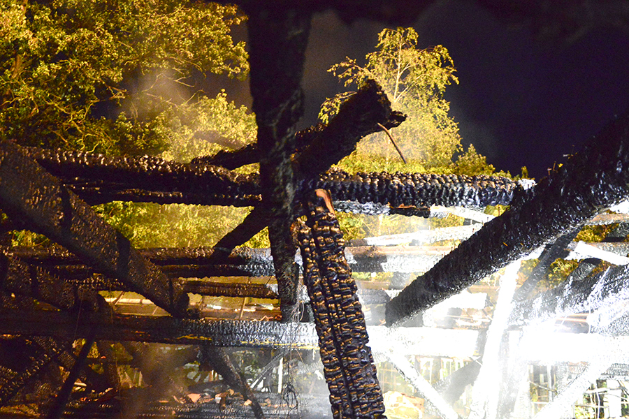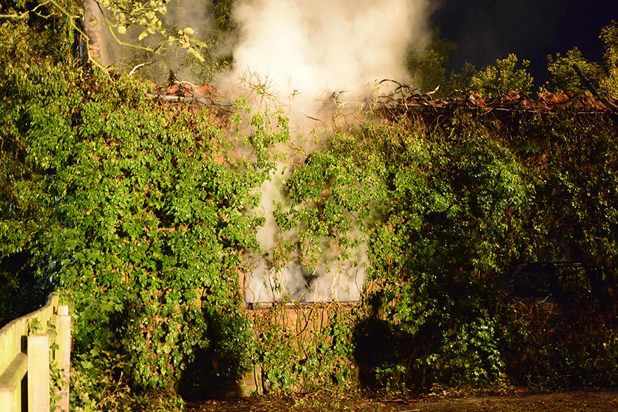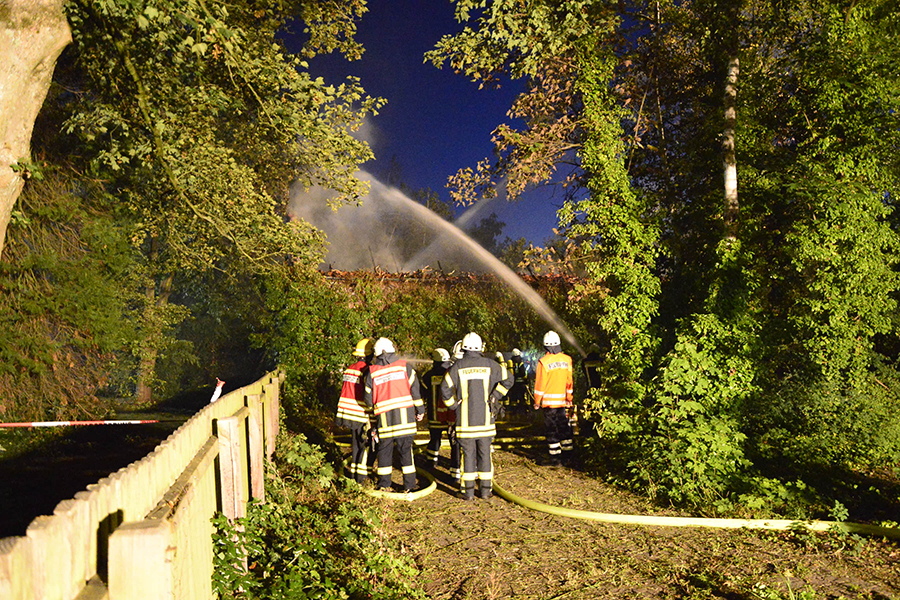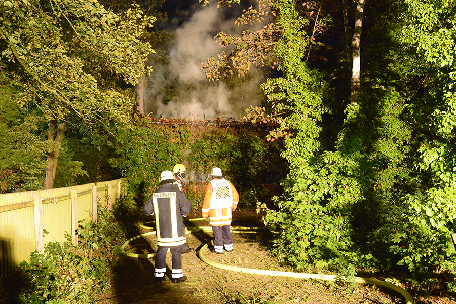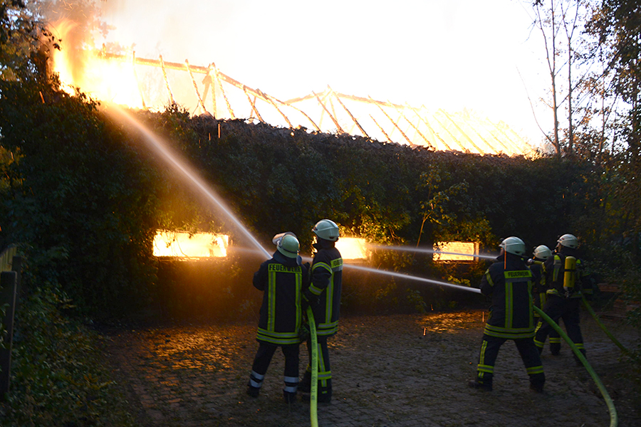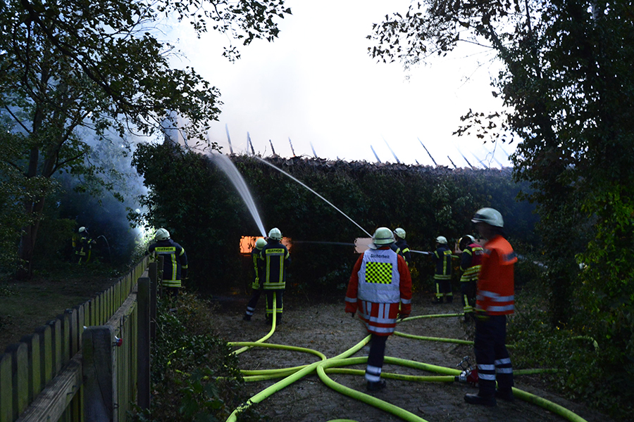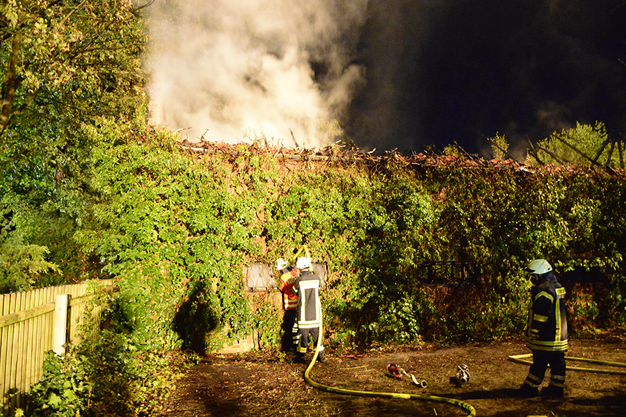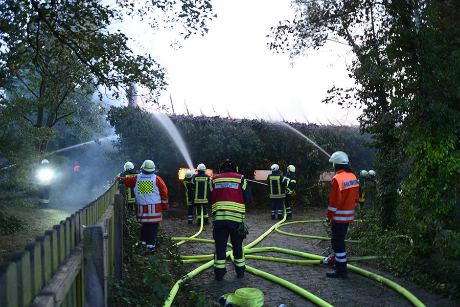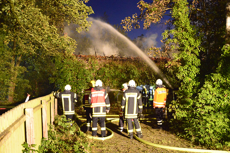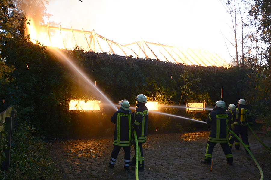 Sechs C-Rohre und ein B-Rohr der Drehleiter kamen unter der Leitung von Burgdorfs Ortsbrandmeister Florian Bethmann zum Einsatz. Nach rund einer Stunde war das Feuer weitestgehend eingedämmt, Bäume des anliegenden Friedhofs konnten vor den Flammen geschützt werden. Das Gebäude selbst brannte komplett aus. Nach zwei Stunden waren keine Flammen mehr vorhanden, allerdings befanden sich noch weitere Glutnester in dem Gebäude, in dem sich unter anderem Stroh und Unrat befanden. Die Nachlöscharbeiten dauern derzeit noch an.