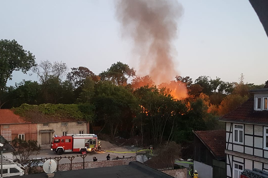 Die große Rauchwolke über Burgdorf am heutigen Dienstag, 21. Juli 2020, war viele Kilometer weit zu sehen. Selbst aus Obershagen konnte man erkennen, dass es in Burgdorf brennt. In der Bahnhofstraße stand ein altes verlassenes Gärtnereigebäude in Flammen. Personen wurden bei dem Einsatz nicht verletzt..