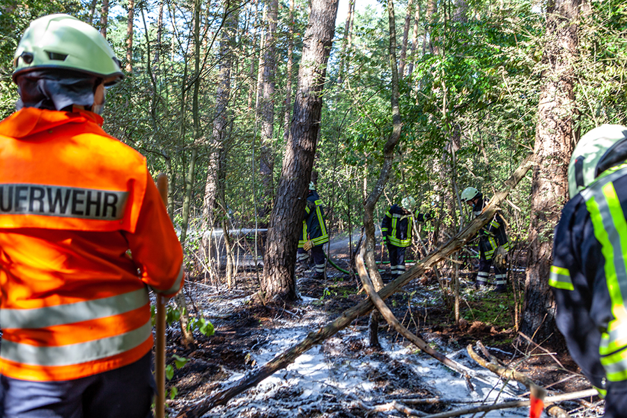 Mit sogenannten "Lightwater", hierbei wird das Löschwasser mit Netzmittel versehen, um die Oberflächenspannung des Wassers zu verringern, damit dieses besser das Brandgut erreichen kann, wurde die Fläche ausgiebig gewässert. Gegen 20 Uhr konnten die letzten Feuerwehrkräfte den Einsatzort verlassen und die Einsatzbereitschaft wieder herstellen. "In zwei Stunden werden wir dann die Brandstelle noch einmal genau kontrollieren", so Ortsbrandmeister Markus Kurowski.