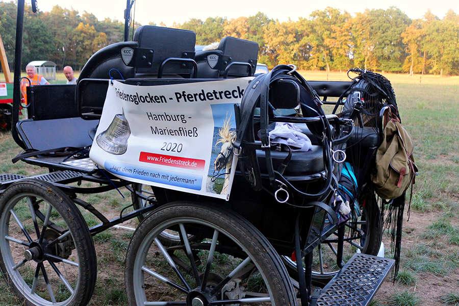 Am gestrigen Donnerstag, 13. August 2020, dem Jahrestag, an dem vor 59 Jahren der Mauerbau in Berlin begann, hatte der Friedensglocken-Pferdetreck auf den Wolfskuhlenwiesen von Barthold Plaß in Schillerslage sein Biwak aufgeschlagen. Verantwortlicher dieser Aktion ist der Verein "Friedensglocken", der am 9. November 2019, am 31. Jahrestag des Mauerfalls, in Brück, nahe der brandenburgischen Landeshauptstadt Potsdam gegründet wurde.