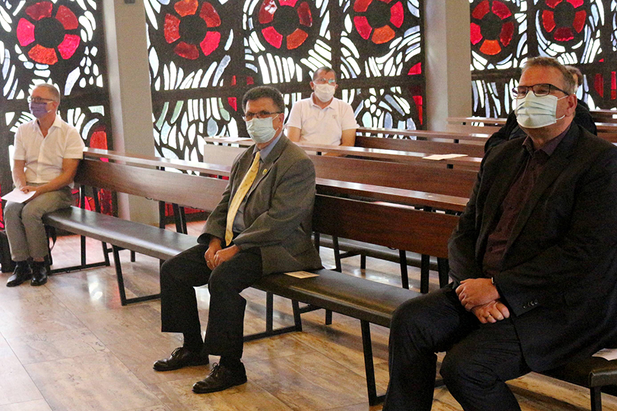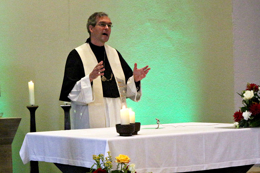 Da die gebotenen Abstands- und Hygienemaßnahmen einen Live-Auftritt des "New Hym"-Chores nicht zuließen, bekamen die Anwesenden und Martin Karras ihr Abschiedslied für seinen Weg in die Stadt, die der Lüneburger Heide ihren Namen gab, "aus der Konserve" zu hören. Tenor der anschließenden Grußworte war unisono die stets vertrauensvolle Zusammenarbeit mit Pfarrer Karras. "Du bist als gewichtiger Pfarrer gekommen und einer geblieben, der tiefe Spuren hinterlässt. Bruder Martin hat seinem Namen alle Ehre gemacht und mit Stärke und Sensibilität den ökumenischen Brückenschlag betrieben", lobte Matthias Paul.