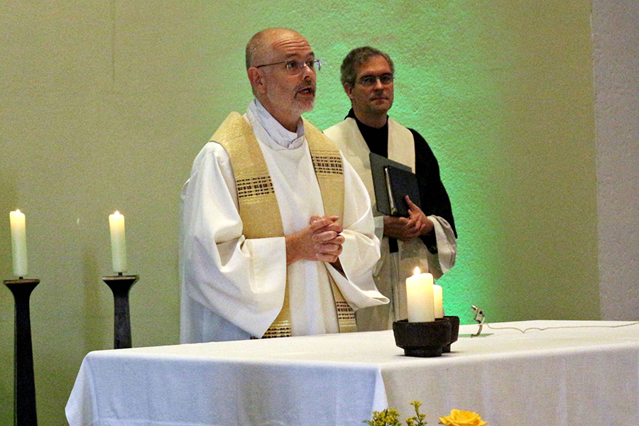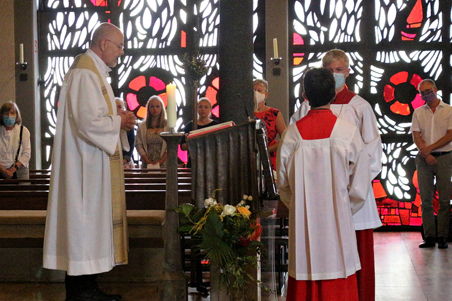 Nach acht Jahren verlässt Pfarrer Martin Karras die katholische Pfarrgemeinde St. Nikolaus mit ihren Kirchorten Burgdorf, Uetze und Hänigsen. Am heutigen Sonntag, 30. August 2020, wurde Karras vom Propst und obersten Katholiken der Region, Dr. Christian Wirz (Hildesheim), vor rund 70 Gästen und Gemeindemitgliedern in der Kirche sowie 30 weiteren Anwesenden vor einem großen Bildschirm im Pfarrgemeindehaus "Im Langen Mühlenfeld" von seinen Aufgaben in der örtlichen Pfarrgemeinde offiziell entpflichtet. Dazu verlas Wirz eine von Bischof Dr. Heiner Wilmer unterzeichnete Urkunde. Nach einem am Dienstag, 1. September 2020, beginnenden Sabbatjahr, übernimmt der 53-jährige Motorrad- und Wackenfan das Amt eines Hospiz- und Klinikseelsorgers in Lüneburg.