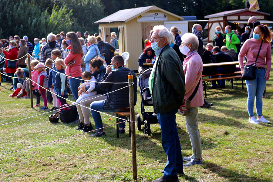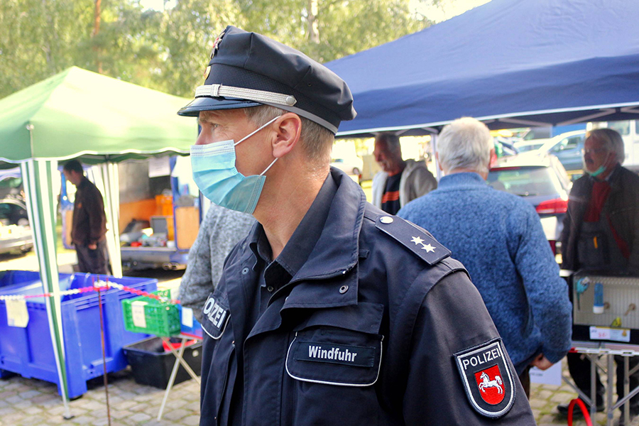 Da coronabedingt etwas weniger Aussteller als üblich vor Ort waren, konnte zwischen den Ständen mehr Abstand gewahrt werden. Die Besucher, die trotz des Corona-Virus auf eine Stippvisite des Burgdorfer Pferdemarktes nicht verzichten wollten, wurden an den eingerichteten Kasseneingängen höflich aufgefordert, eine Mund- und Nasenmaske zu tragen. "Dafür haben wir noch ein paar mehr Ehrenamtliche gewinnen können, so dass unser Pferdemarkt unter den herrschenden Bedingungen in abgespeckter Form perfekt gestemmt werden konnte", betonte Schrader. Deshalb hatte auch Burgdorfs "maskierter" Kontaktbeamte der Polizeiinspektion Burgdorf, Jörg Windfuhr, kaum Anlass, beim Publikum die vorgeschriebenen Verhaltensmaßnahmen anzumahnen.
