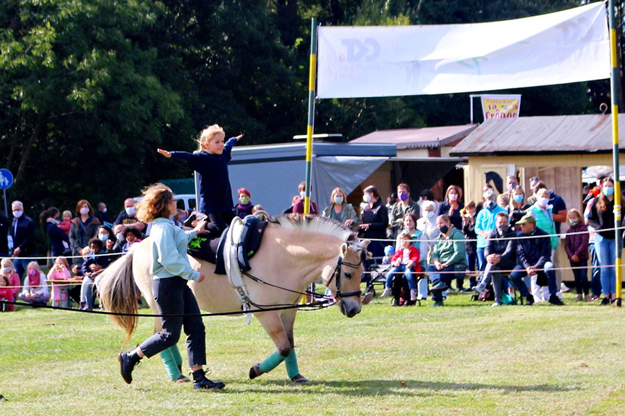 Für das Jugend- und Kulturzentrum JohnnyB. war der finale Pferdemarkt 2020 eine gute Gelegenheit, mit einer Ausstellung im kunterbunten Stadtsparkassenzelt an das 20jährige Bestehen seines großartigen Kinder- und Jugendzirkus "Kritzpritzknuckelmuckeldü" zu erinnern. Und ein paar Schritte weiter zeigte unter anderem die junge Voltigiergruppe vom Hof Sichtermann auf dem Gelände des Vereins Burgdorfer Pferdeland ihr Können.