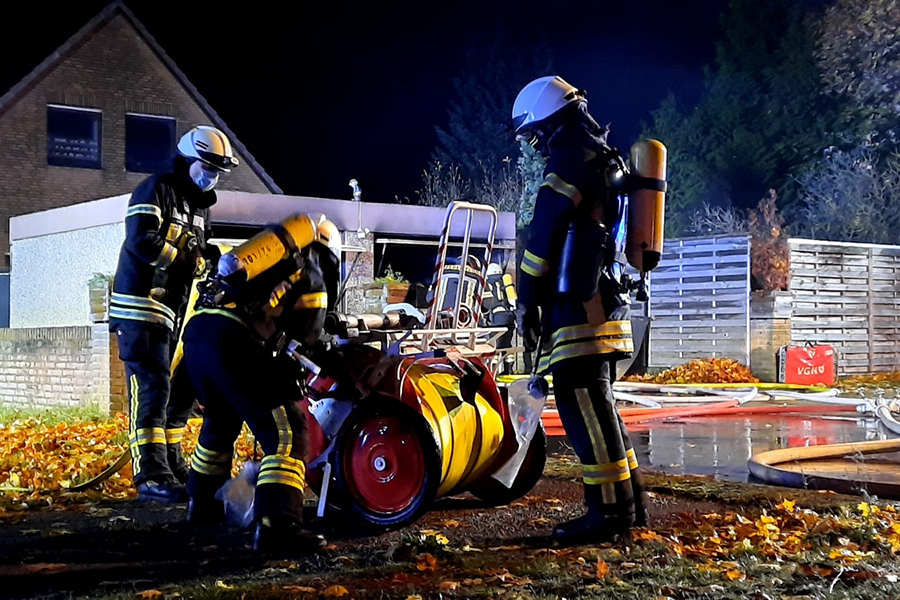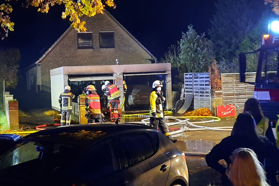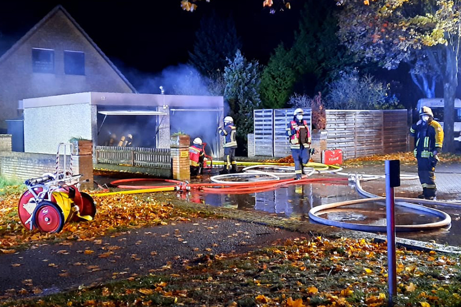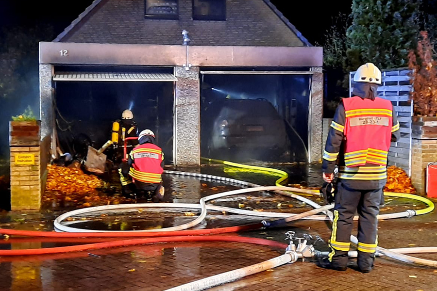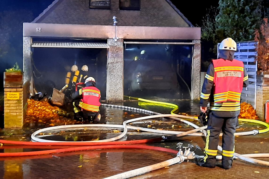 32 Brandbekämpfer verhindern größeren Schaden bei Feuer in einer Doppelgarage