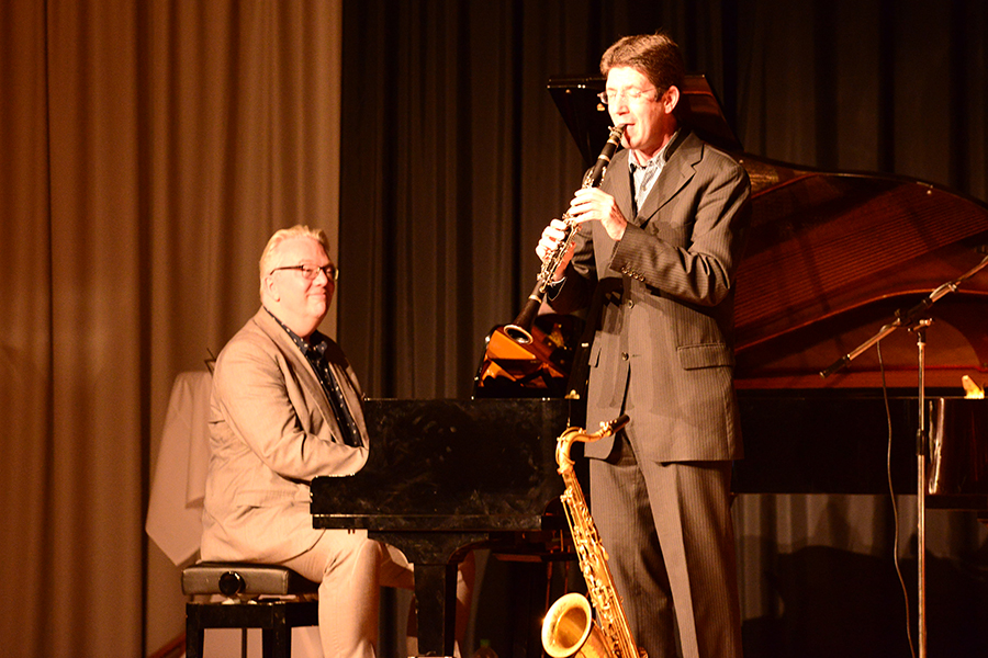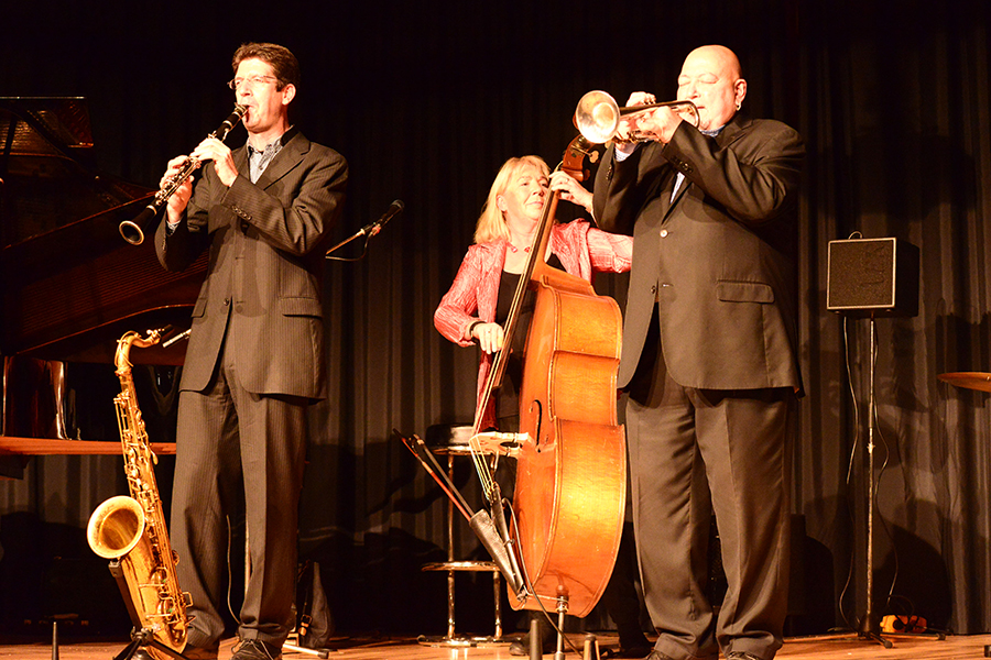 Doch wie erzielt man mit wenigen Besuchern, die zum Teil aus über 100 Kilometer Entfernung anreisten, Stimmung in einem großen Festsaal? Gerade die Jazzfans sind ein enges Miteinander gewohnt und brauchen das. Erstaunlich, dass diese negativen Umstände dann den Abend nicht beeinträchtigen konnten. Das lag an der Qualität des ungewöhnlichen Quintetts. Ausnahmsweise wurden drei Sets mit zwei "Lüftungspausen" gespielt. Und die Zeit verging wie im Fluge.