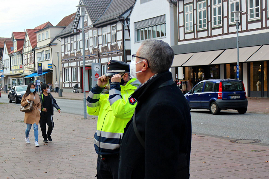 Für den gestrigen Dienstag, 3. November 2020, hatten sich Bürgermeister Armin Pollehn, Burgdorfs Kontaktbeamter Jörg Windfuhr sowie der Leiter des örtlichen Ordnungsamtes, Christian Enderle, am Wicken-Thies-Brunnen auf dem Spittaplatz verabredet, um in der Stadt einen gemeinsamen Blick auf die Einhaltung der verordneten Maskenpflicht zu werfen sowie die Bürger für die Befolgung der Corona-Regelungen zu sensibilisieren.