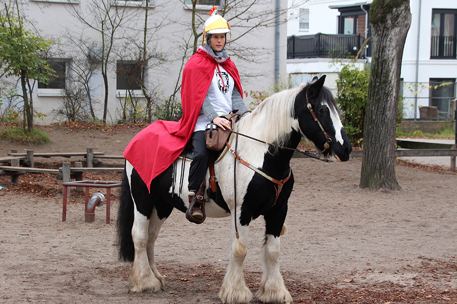 Trotz der Corona-Pandemie brauchten die Jungen und Mädchen der kirchlichen Kindertagesstätten und der Grundschulen der Kernstadt in Burgdorf auch in diesem Jahr nicht auf den Besuch des Heiligen Martin verzichten. Natalie Reißer in der Person von Sankt Martin hoch zu Roß, die für diesen Tag Sonderurlaub von ihrem Arbeitgeber erhalten hatte, wurde von Pastorin Annabell Demera von St. Paulus, Pastor Valentin Winnen von St. Pankratius, Gemeindereferent Stefan Horn von der St. Nikolaus Pfarrgemeinde und Musikern des Posaunenchores von St. Pankratius begleitet.