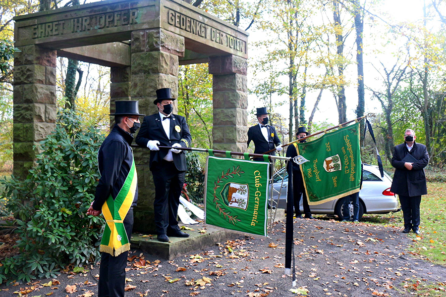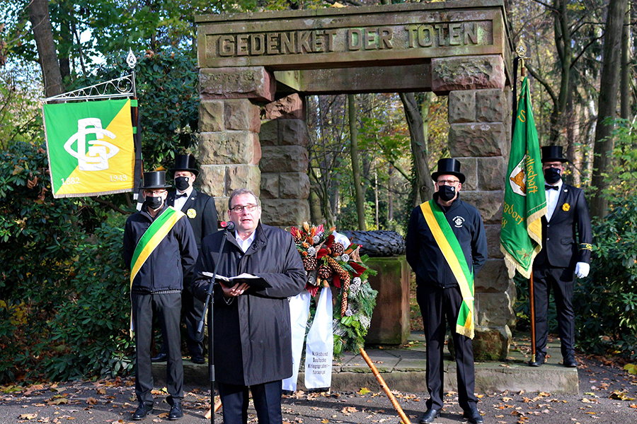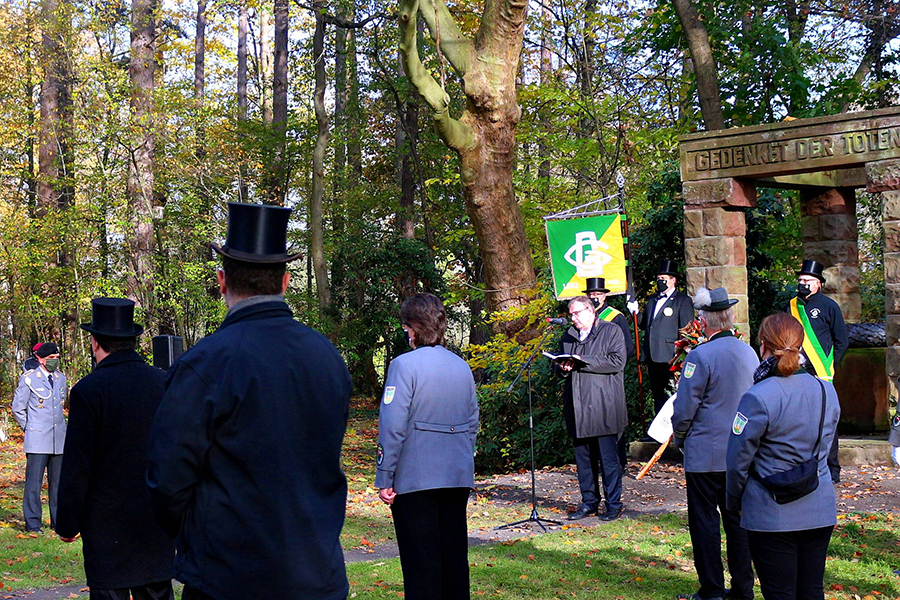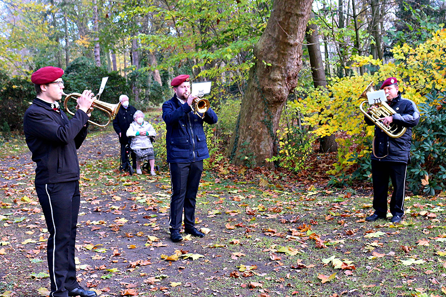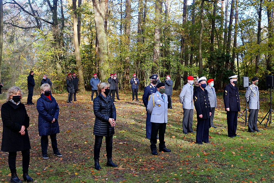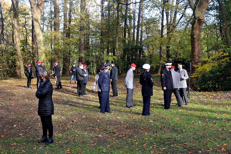 Burgdorfs Vizebürgermeister Matthias Paul hielt die Ansprache im Park in Anwesenheit weniger Besucher sowie vor den abgespeckten Abordnungen der Burgdorfer Schützengesellschaft, der Soldatenkameradschaft, des Clubs "Germania" und des Burgdorfer Fanfarencorps "Wikinger". Ein "Wikinger"-Trio intonierte am Ende der Gedenkstunde das Soldatenlied von 1809 "Der gute Kamerad".