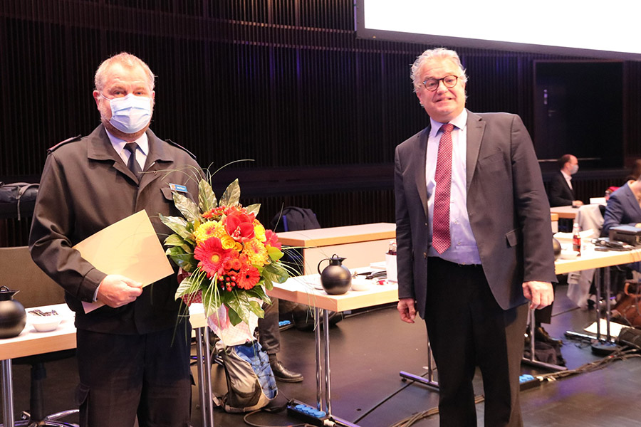 Sie behalten stets einen kühlen Kopf, wenns brennt und brenzlig wird: Die Feuerwehrmänner und -frauen der Regionsfeuerwehr. Während der Regionsversammlung wurden am heutigen Dienstag, 15. Dezember 2020, zwei von ihnen besonders geehrt beziehungsweise gewürdigt: Eberhard Schmidt, stellvertretender Regionsbrandmeister, hat das Feuerwehrehrenzeichen am Bande erhalten. Überreicht wurde es ihm von Martin Voß, Leiter des Amtes für Brand- und Katastrophenschutz der Polizeidirektion Hannover. Zudem wurde Detlef Hilgert weiterhin als Leiter des Brandschutzabschnitts IV (Burgdorf, Lehrte, Sehnde und Uetze) ernannt. Von Regionspräsident Hauke Jagau erhielt er heute die Ernennungsurkunde für die kommenden sechs Jahre.