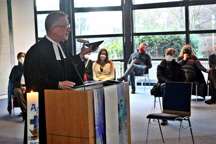 Pastor Matthias Paul sei "getrieben vom Gottes Geist", so die Vorsitzende des Kirchenvorstandes der Burgdorfer St.-Paulus-Kirchengemeinde, Annegret Oelschlägel, zum Auftakt seiner Verabschiedung am gestrigen Sonntag, 10. Januar 2021, in der Südstadt. Während eines Gottesdienstes im Paulus-Kirchenzentrum wurde der langjährige Geistliche im Gemeindedienst vom stellvertretenden Superintendenten, Pankratius-Pastor Dirk Jonas, von seinen Aufgaben entpflichtet. Die verabschiedende Andacht wurde von Familie, Freunden und Weggefährten, vom Ersten Stadtrat Michael Kugel und DRK-Chef Gero von Oettingen sowie musikalisch vom Scena-Vorsitzenden Dr. Matthias Schorr (Violine), Thomas Hildebrand (Violine) und Jan Hildebrand (Orgel) begleitet.