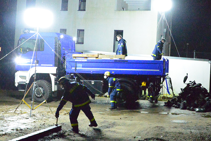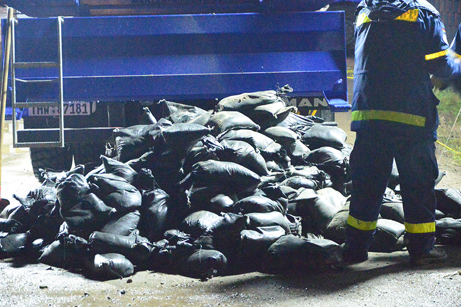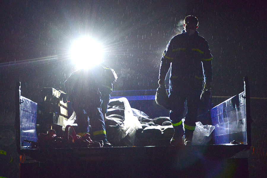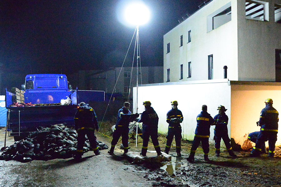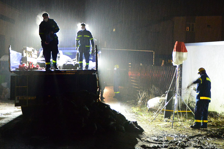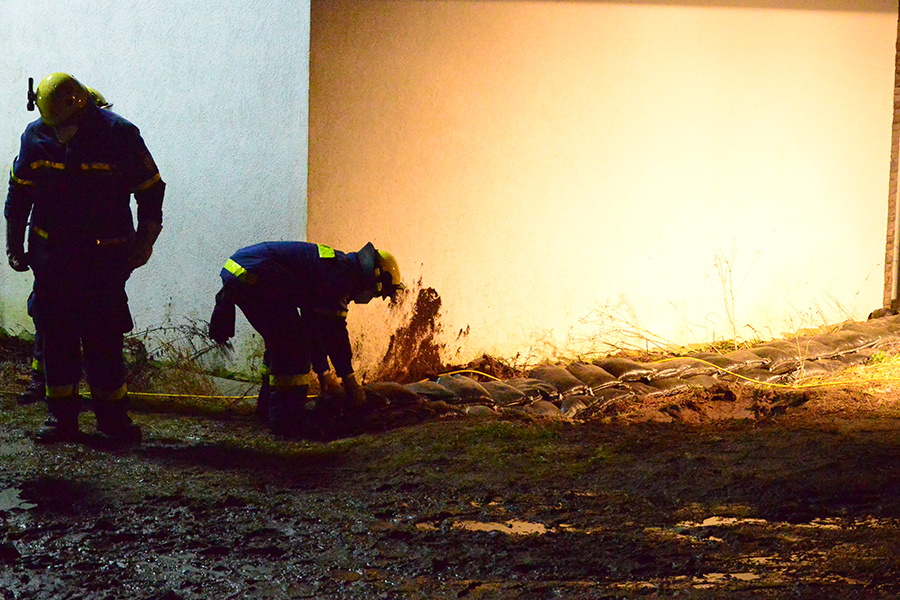 Acht THW-Helfer rückten mit drei Fahrzeugen aus und brachten unter anderem vier Paletten mit Sandsäcken auf einem Lkw mit. Sie bauten eine Barriere, damit das Wasser nicht weiter auf das Grundstück, sondern über die Straße abfließen kann. Um 1 Uhr waren die THW-Helfer wieder in ihrer Unterkunft angekommen.