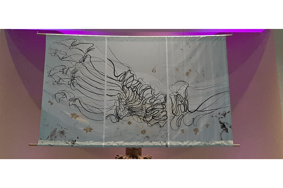 Tobias Fronia und Norbert Gebbe aus dem Vorstand hatten in den Vormittagsstunden noch kleine Aufmerksamkeiten an die angemeldeten Mitglieder verteilt. So konnte es sich jeder bei einer Tasse Kaffee und Kerzenschein vor seinem Computer daheim gemütlich machen. Barbara Gebbe, geistliche Leiterin der Kolpingsfamilie Burgdorf, leitete den Abend mit einer kurzen Andacht ein. Unter der Überschrift "Die Kraft des Wandels" stellte sie dabei das aktuelle MISEREOR-Hungertuch in den Mittelpunkt, das während der derzeitigen Fastenzeit auch in der Burgdorfer St. Nikolaus-Kirche das Kreuz verhüllt.