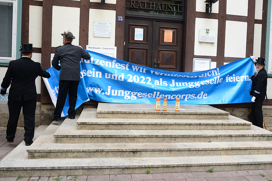 In beständiger Regelmäßigkeit gelingt es den Junggesellen im Rahmen des Burgdorfer Volks- und Schützenfestes, die Rathaus-Treppe sowie den Ratssaal mit ihren Schützenkönigen zu erobern. Da aufgrund der Corona-Pandemie das älteste Fest der Stadt abermals nicht stattfinden kann, waren die Fahnenjunker um den Vorsitzenden Carsten Hoffmann kreativ geworden und haben nach Möglichkeiten gesucht, wie das historische Rathaus in 2021 anderweitig für die Junggesellen "erobert" werden kann.