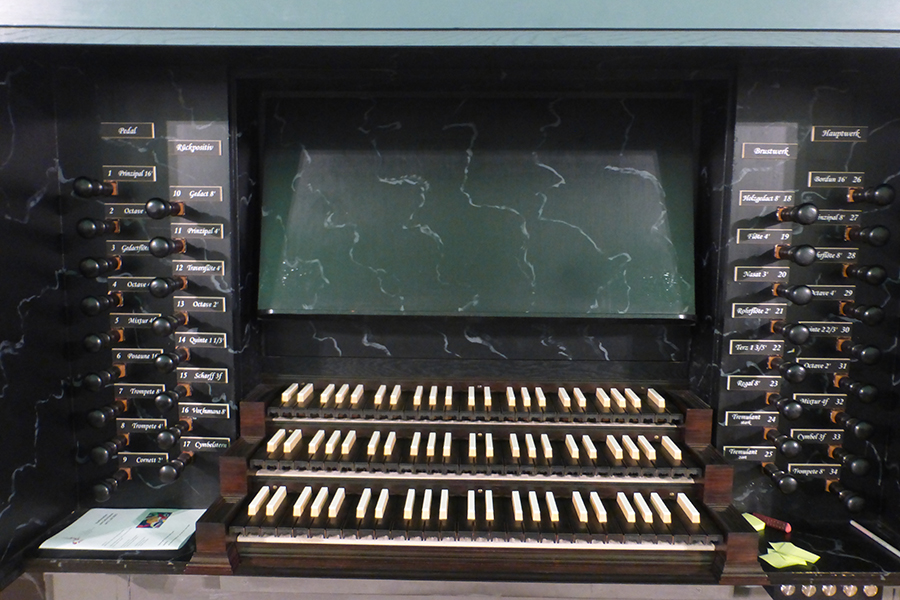 Register, Pfeifen, Manuale, Balg, holzgedackte Pfeifen, Hauptwerk, Rückpositiv, Brustwerk …. und so weiter und so fort. Jede Menge Begriffe, die ein Laie bisher nicht unbedingt gehört hatte. Fragen wurden beantwortet und anschaulich wurde zum Beispiel erklärt, wie die Orgel gestimmt wird und welche unterschiedlichen Pfeifen es gibt.