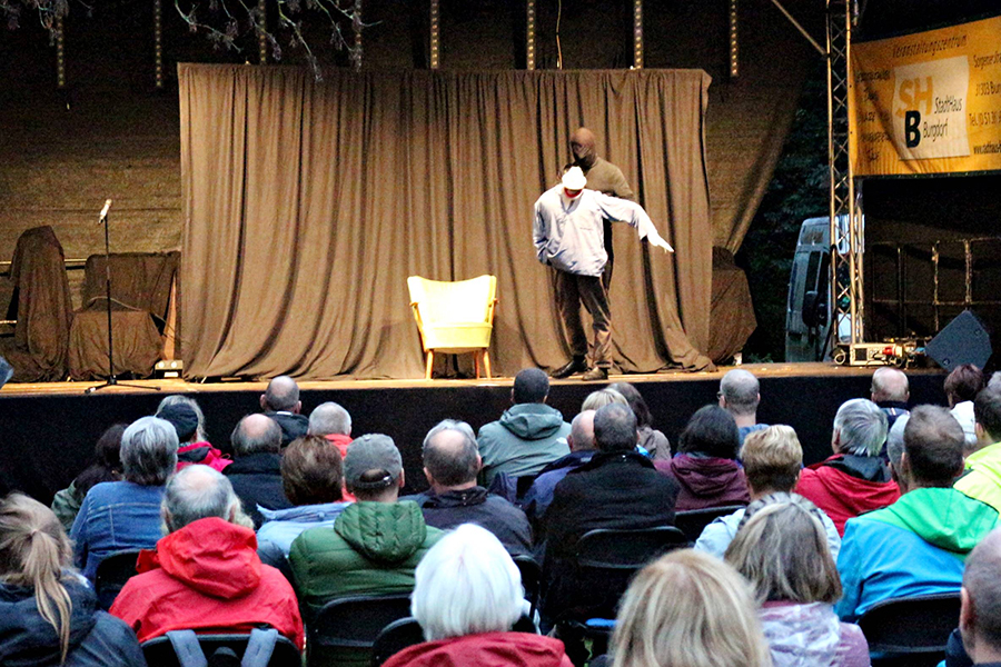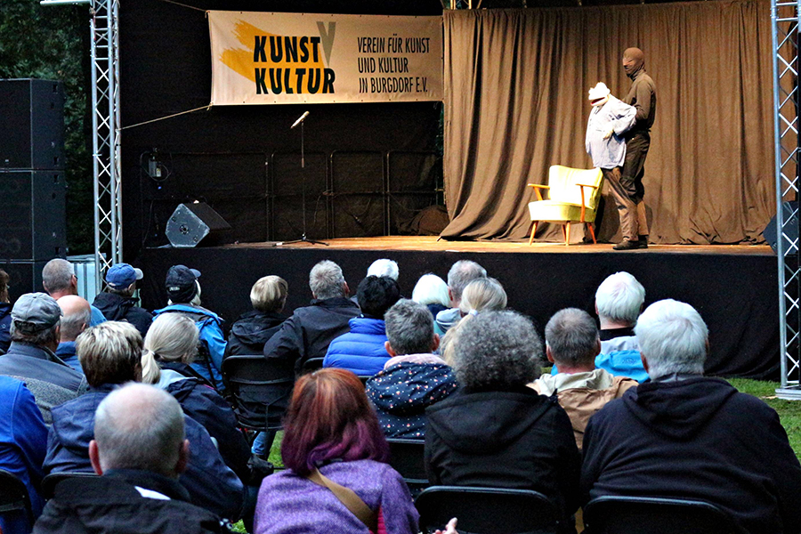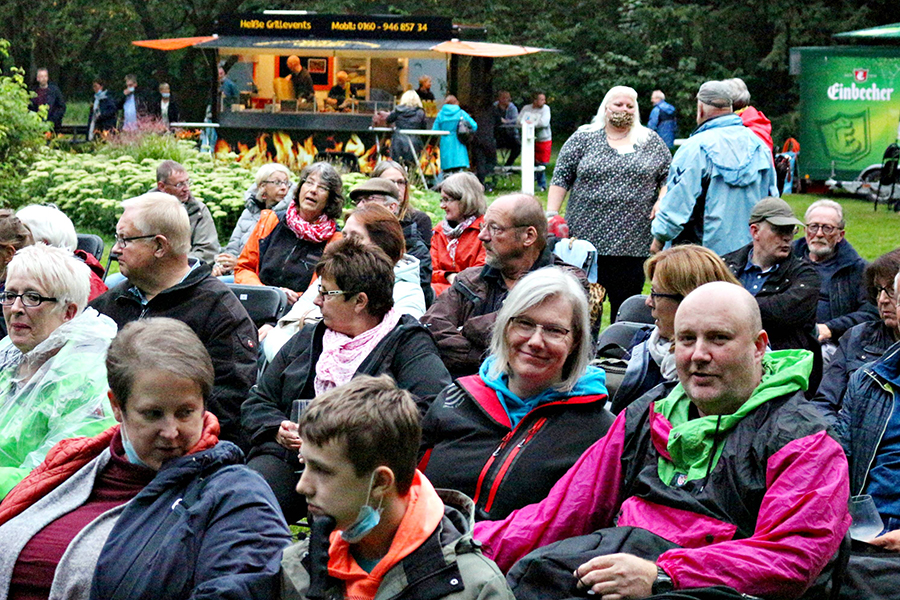 Mit der Hamburger Grußformel "Hummel, Hummel, – Mors Mors" eröffnete "Die Werner Momsen ihm seine Soloshow" am gestrigen Donnerstag, 19. August 2021, die viertägige Veranstaltung "Burgdorfer Stadtpark:Open:Air" am Schwanenteich.