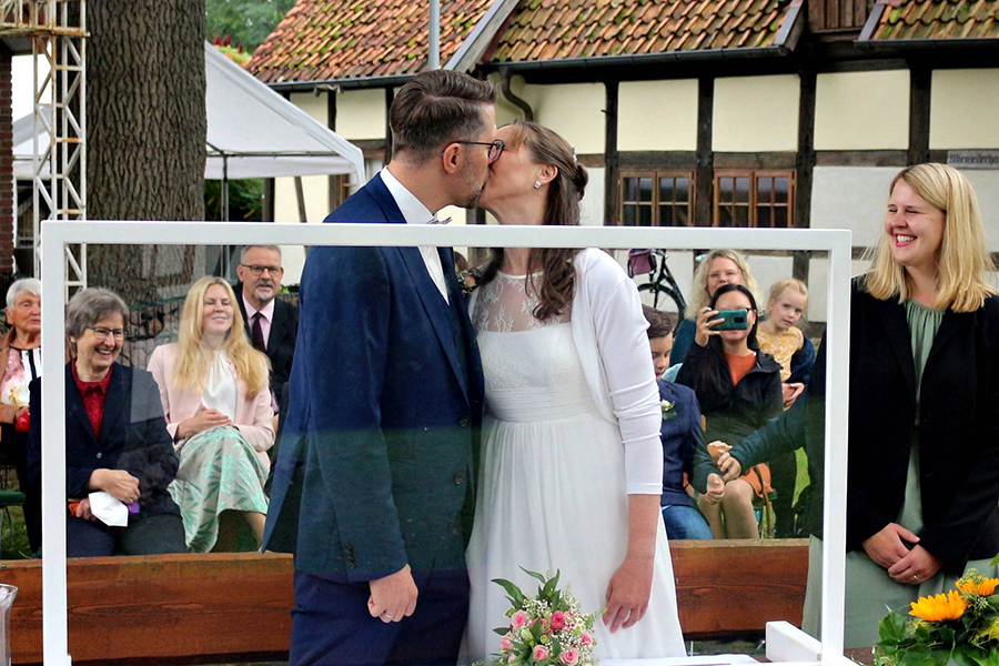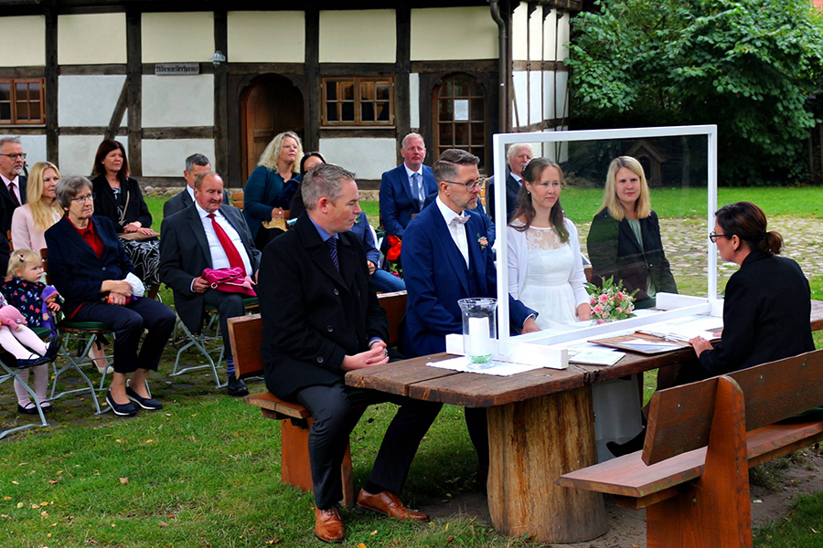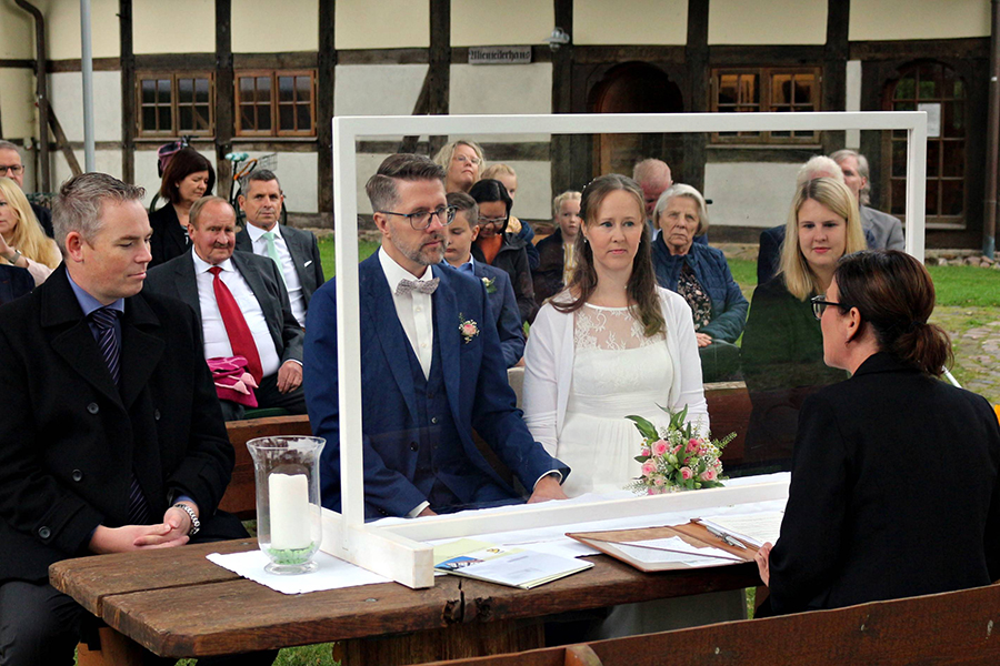 Manuel Stettin und Sandra Fernau haben sich am heutigen Sonnabend, 18. September 2021, das Jawort gegeben. Das in Burgdorf beheimatete Paar, das aus Celle stammt, hatte sich für seine Trauungszeremonie das Standesamt in der malerischen Fachwerkkulisse des Otzer "Back`s" ausgesucht. Damit gingen sie in die Dorfchronik ein, denn den Bund fürs Leben, den sie sich durch Standesbeamtin Melanie Janßen schließen ließen, war seit 2007 die 500. Vermählung in Otze.