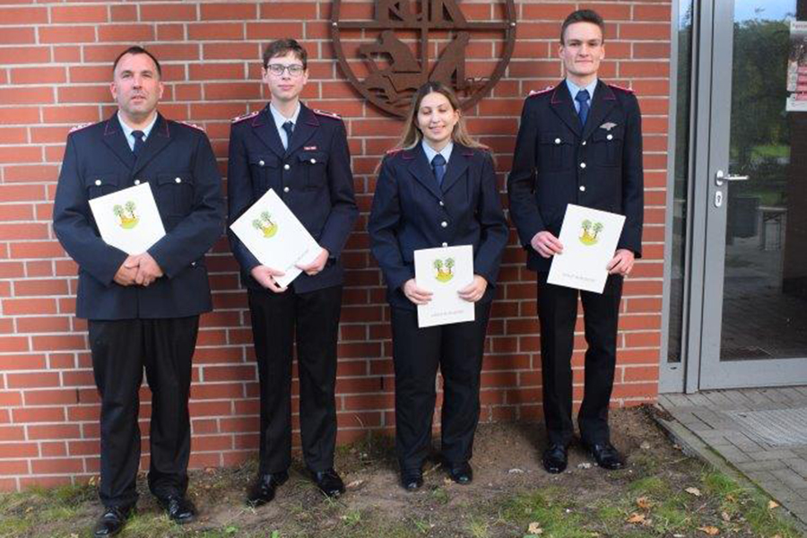 Der stellvertretende Ortsbrandmeister Björn Batschauer wurde zum Hauptlöschmeister ernannt. Für langjährige Mitgliedschaft in der Feuerwehr bekamen Holger Jacob für 25 Jahre und für 40 Jahre Christian July und Karsten Leinemann die Urkunden überreicht.