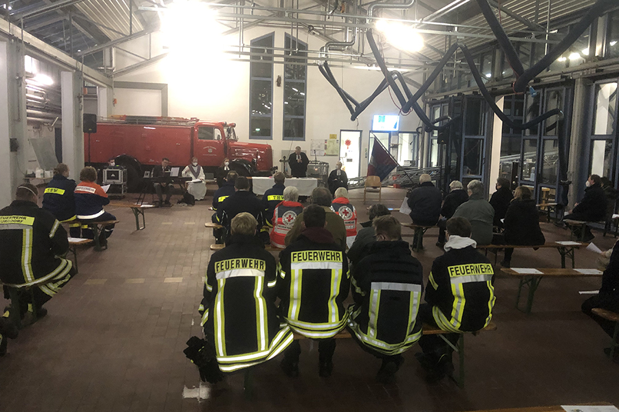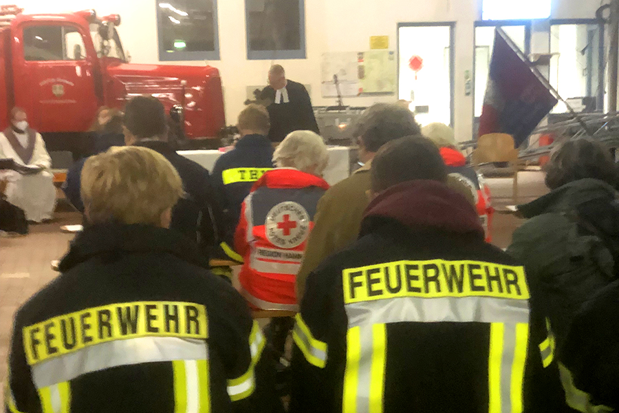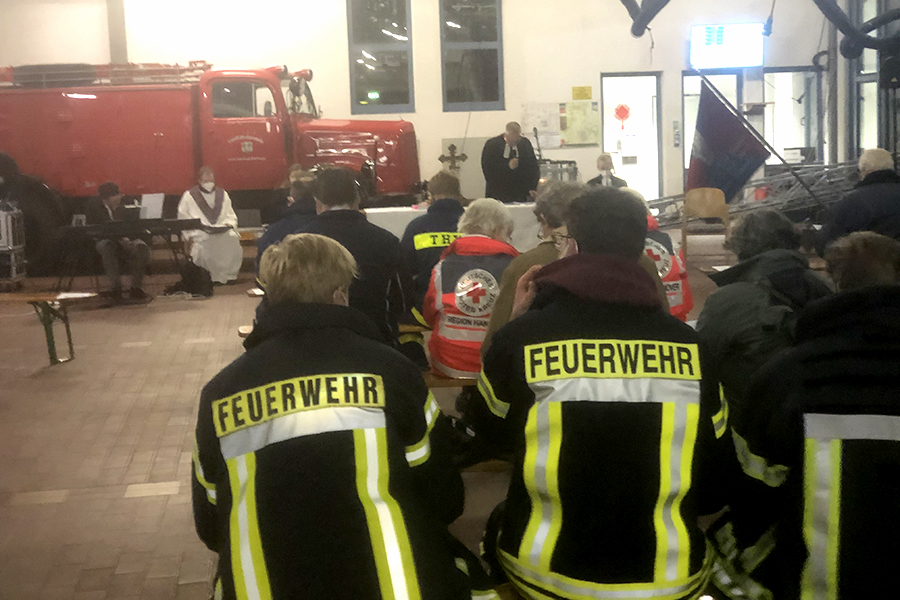 In diesem Jahr konnte nun am vergangenen Mittwoch, 17. November 2021, wenn auch unter strengen Abstands- und Hygieneregeln sowie durchgehender Maskenpflicht für alle Besucher und mit reduzierter Personenzahl, ein Blaulicht-Gottesdienst gefeiert werden. Neben vielen Kameradinnen und Kameraden der Feuerwehr waren zum Beispiel auch Vertreter von THW und DRK dabei.