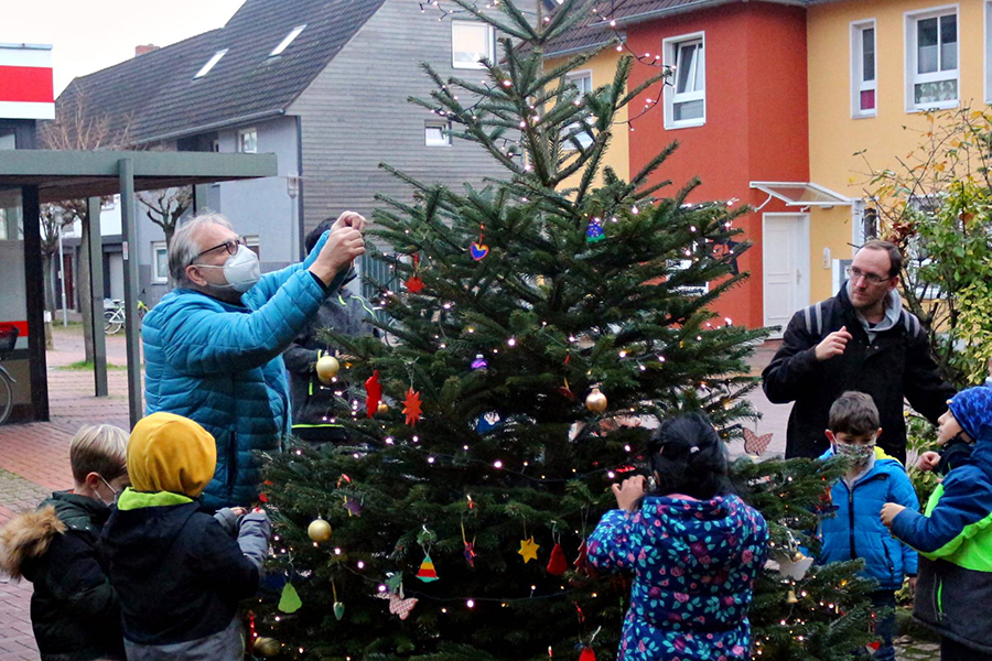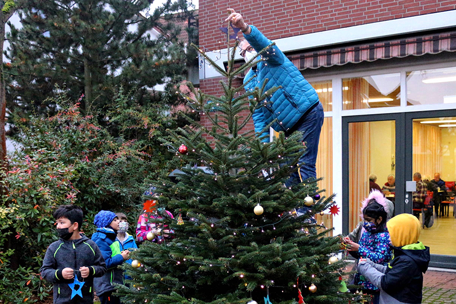 Trotz der bedrohlichen Corona-Pandemie hatte es der Ortsverein des Burgdorfer Deutschen Roten Kreuzes (DRK) möglich gemacht, am heutigen Montag, 29. November 2021, eine Gruppe Erstklässler der Grundschule an der Hannoverschen Neustadt und Schulkindern des Pädagogischen Mittagstischs beim örtlichen Kinderschutzbund (KSB) zum traditionellen Tannenbaumschmücken vor dem DRK Aktiv-Treff in der Wilhelmstraße einzuladen.