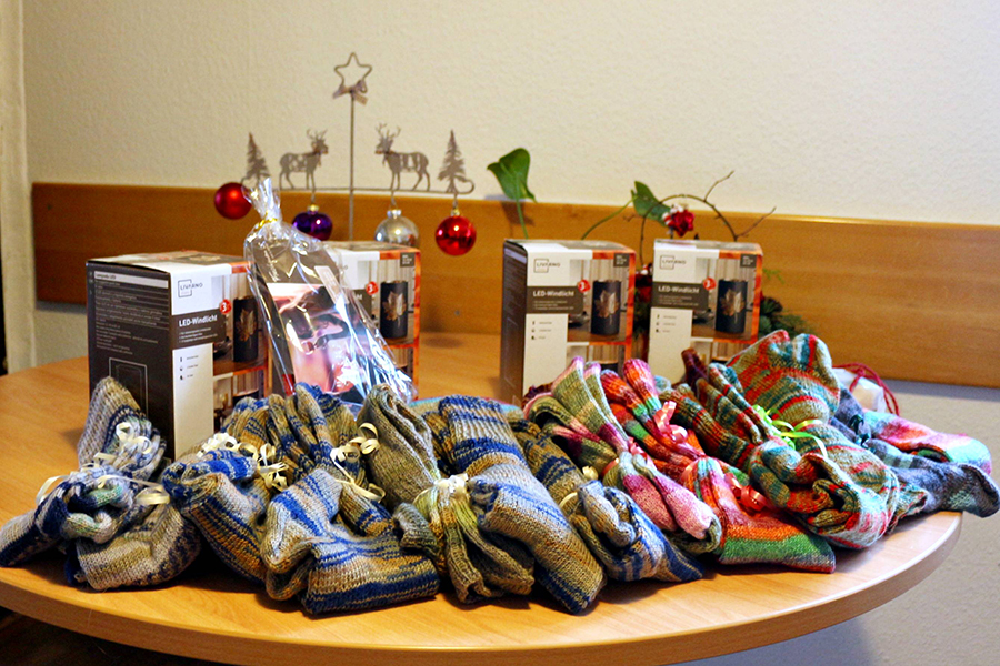 Aus Geldzuwendungen der "treuen Förderkreismitglieder", so Obst, konnten 25 personalisierte Essensgutscheine je 20 Euro von Freshman`s Burgdorf besorgt und an Dipl. Sozialarbeiterin Grit Schiller, Verwaltungsmitarbeiterin Nicole Grave sowie an die Sozialarbeiterin im Anerkennungsjahr, Janna Utermann, ausgehändigt werden. Darüber hinaus hatten Obst und Ensinger 21 Paar handgestrickte Wollsocken für die zu Betreuenden in der Tageswohnung mitgebracht.