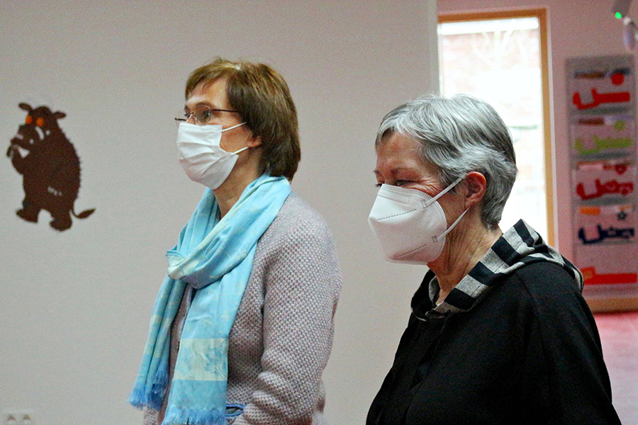 Die pädagogische Leiterin im Kirchenkreis Burgdorf, Birgit Meinig (links), mit der stellvertretenden Leiterin des neuen Paulus-Familienzentrums/Krippe und Kindergarten "An den Hecken", Natalie König (rechts), im Neubaugebiet in der Burgdorfer Südstadt. / Foto: Georg Bosse