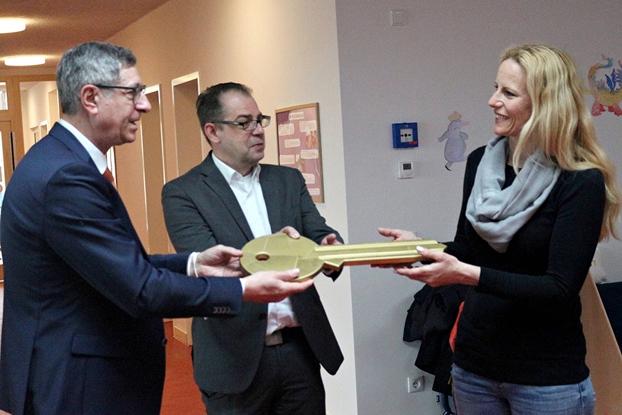 Birgit Meinig bedankte sich bei Politik und Verwaltung für den hohen Grad der Beteiligung bei Planung und Bau, der zu diesem "großartigen Ergebnis" führte: "Wir und die Eltern sind von den großzügigen Möglichkeiten in den lichten und transparenten baulichen Begebenheiten, die auch unseren pädagogischen Anforderungen entsprechen, begeistert", erklärte Meinig.