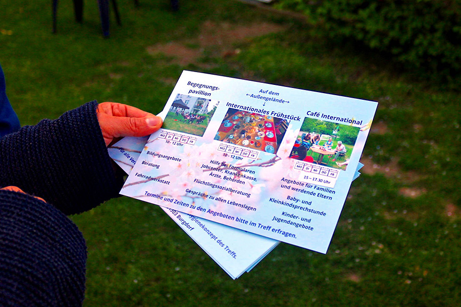 Zum Bildungs- und Beratungsangebot des Nachbarschaftstreffs gehört auch der Begegnungspavillon auf dem Außengelände, der jeweils dienstags und donnerstags von 10 bis 12 Uhr bei Kaffee oder Tee zum Diskutieren, Klönschnack und lockeren Informationsaustausch einlädt. "Dieses Angebot hat sich zu einem zwanglosen Treff entwickelt, bei dem verschiedene Kulturen zusammenkommen. Bei dem Miteinander zeigen früher Geflüchtete viel Mitleid mit den Personen aus der Ukraine und möchten spenden, obwohl sie selbst noch Spenden benötigen", erklärte Jacobi.
