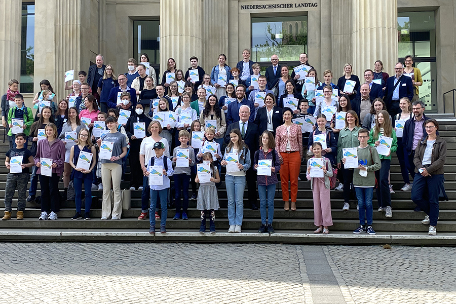 Neben Noa-Lean und der Lehrerin Merleen Alker reisten auch andere Schulen aus ganz Niedersachsen an, um die Preise in Empfang zu nehmen. Insgesamt gab es in diesem Jahr 2369 Einreichungen, eine davon von Noa-Lean.