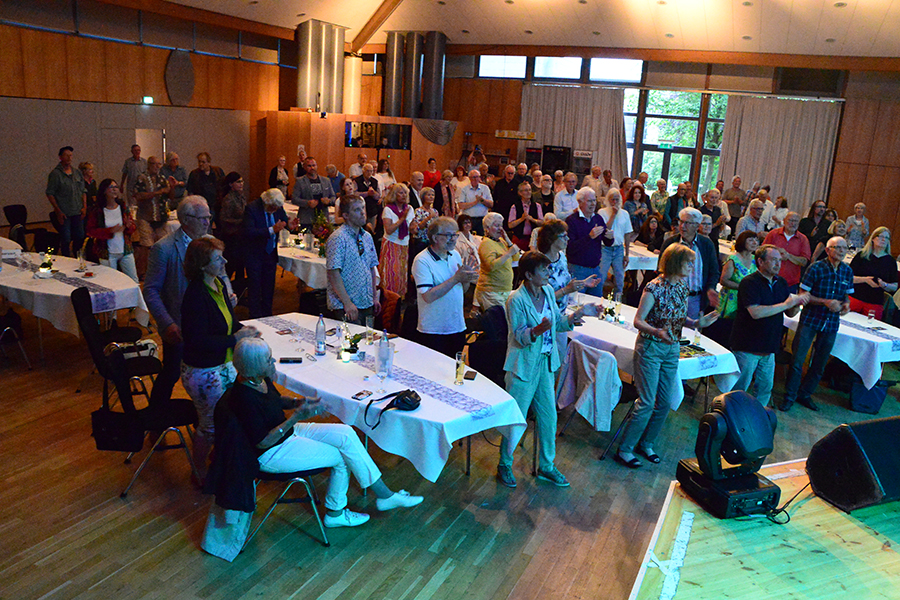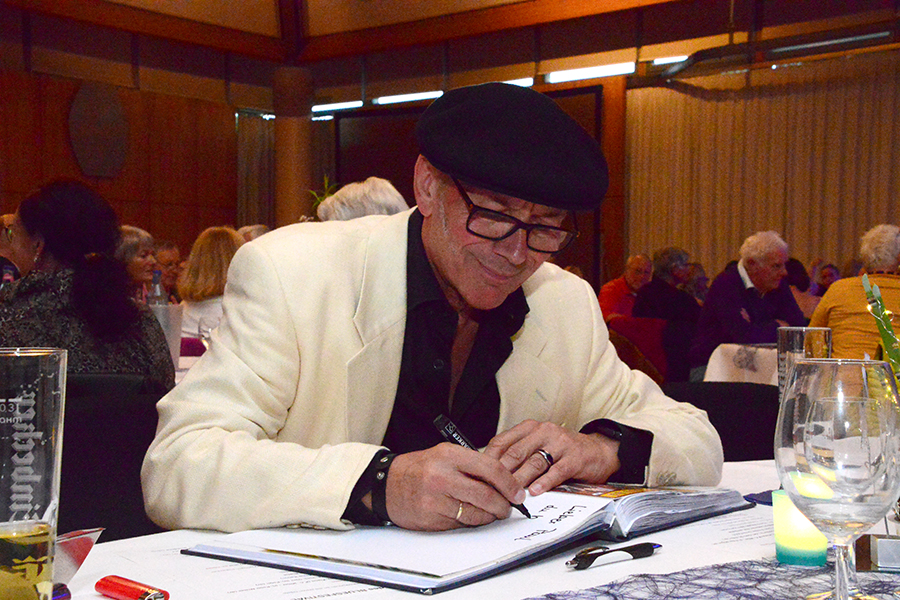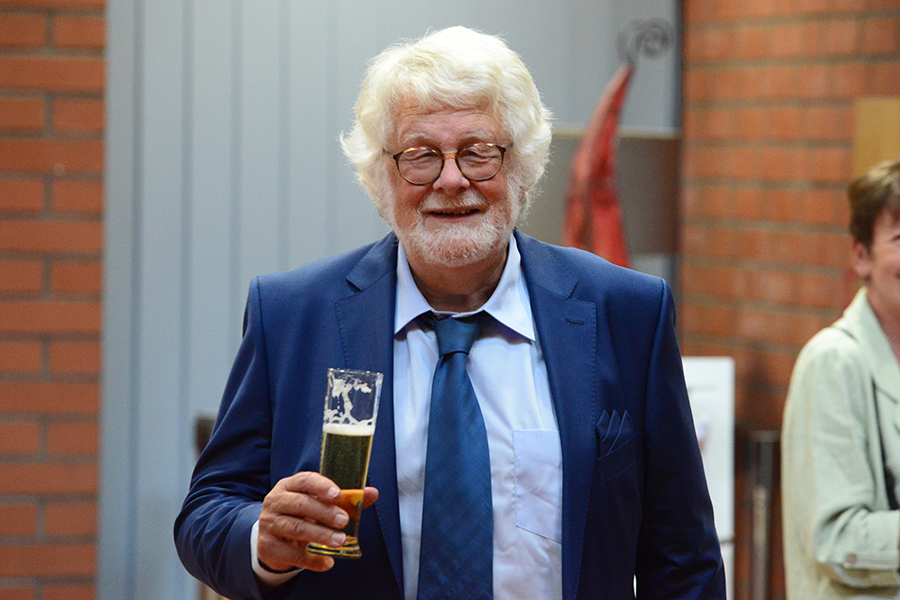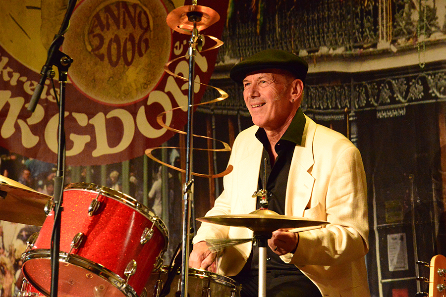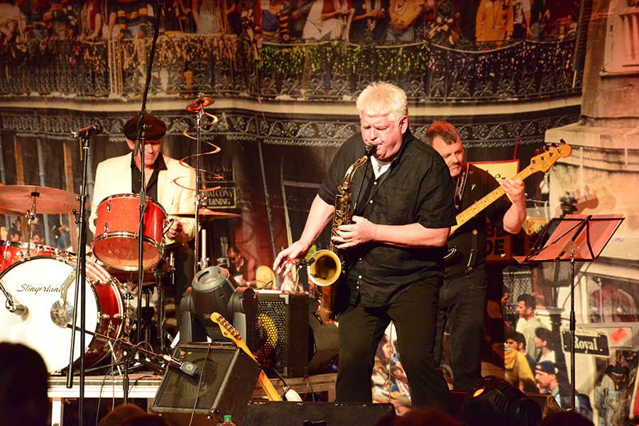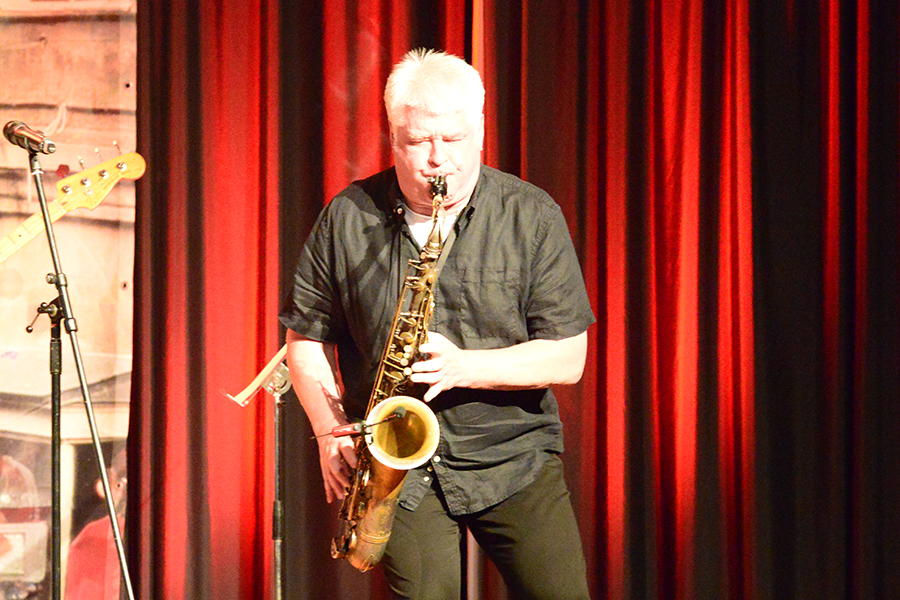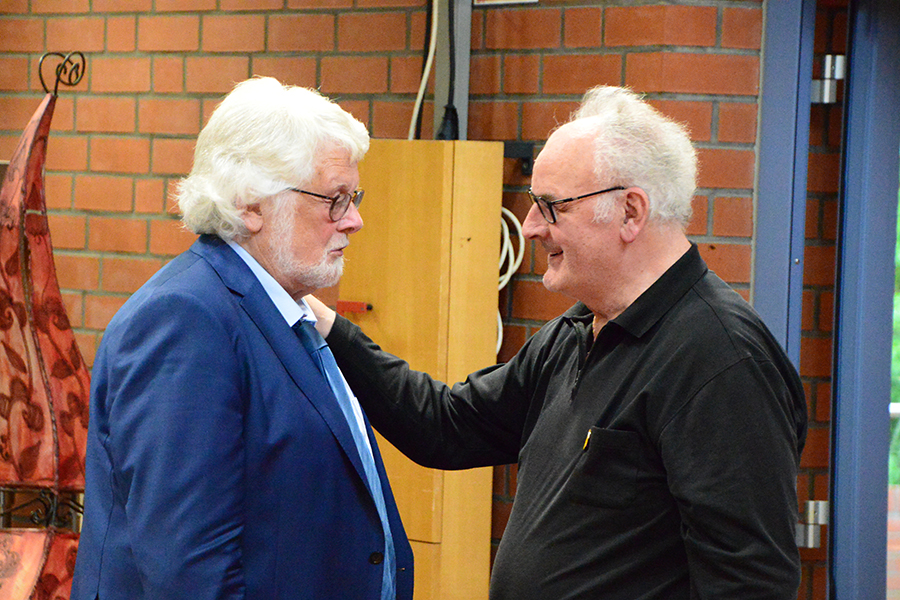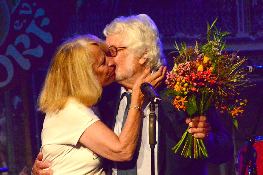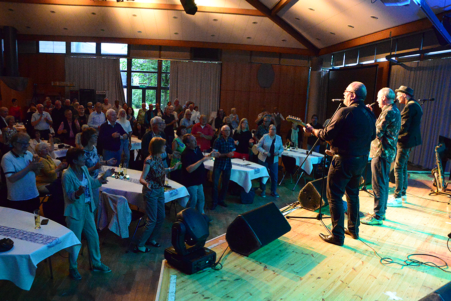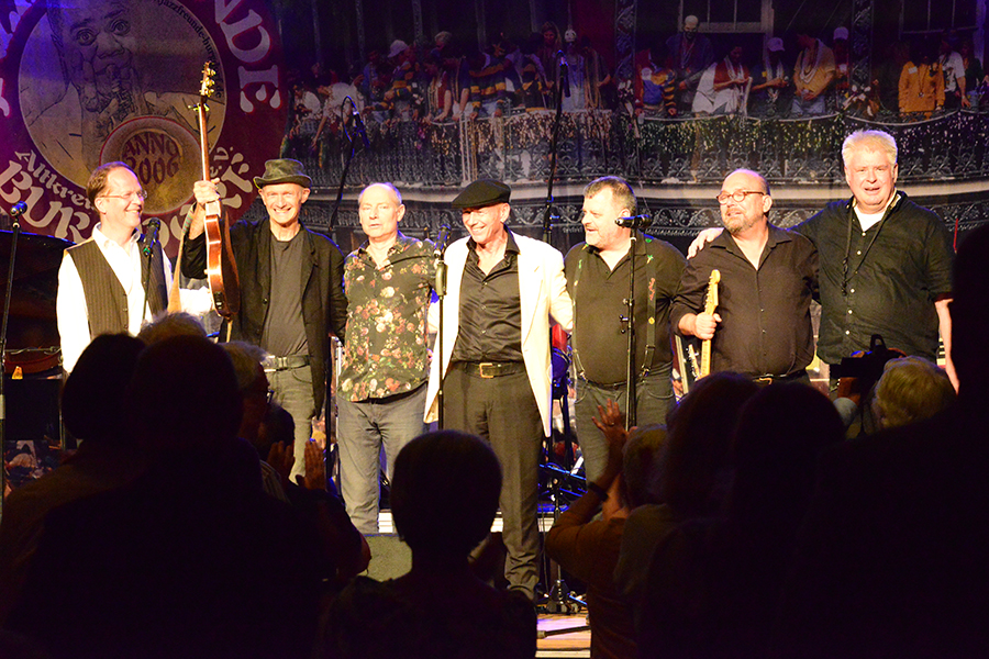 Unterbrochen wurde die Show vom Einzug der Dudelsack-Spielerin Ann-Kathrin Albert, gefolgt von Uwe Görlich und Marina Richter, zwei ehemalige Staatsanwälte. Sie hatten eine Laudatio für Paul Rohde vorbereitet, da dieser exakt an dem Tag seinen 80. Geburtstag feierte und auf 50 Jahre ehrenamtliche Arbeit zurückblicken konnte. Seine Leistung als Gründer des Jazzclubs wurde vom 2. Vorsitzenden Andreas Fehér und der unermüdlichen Helferin Carola Görs gewürdigt. Rohde bedankte sich für die Worte und stellte die Leistung seiner Frau Magitta hervor, ohne die nichts laufen würde.