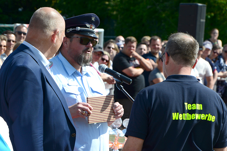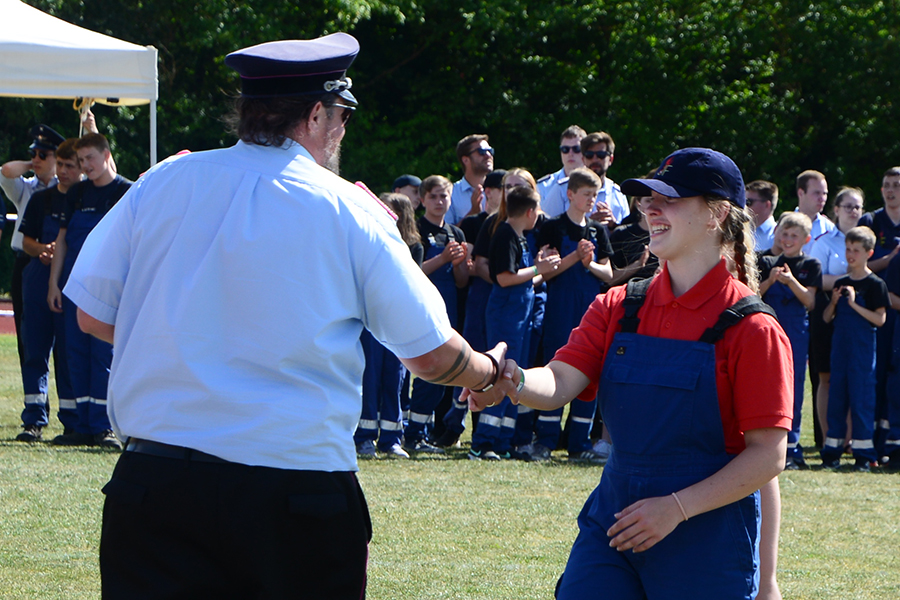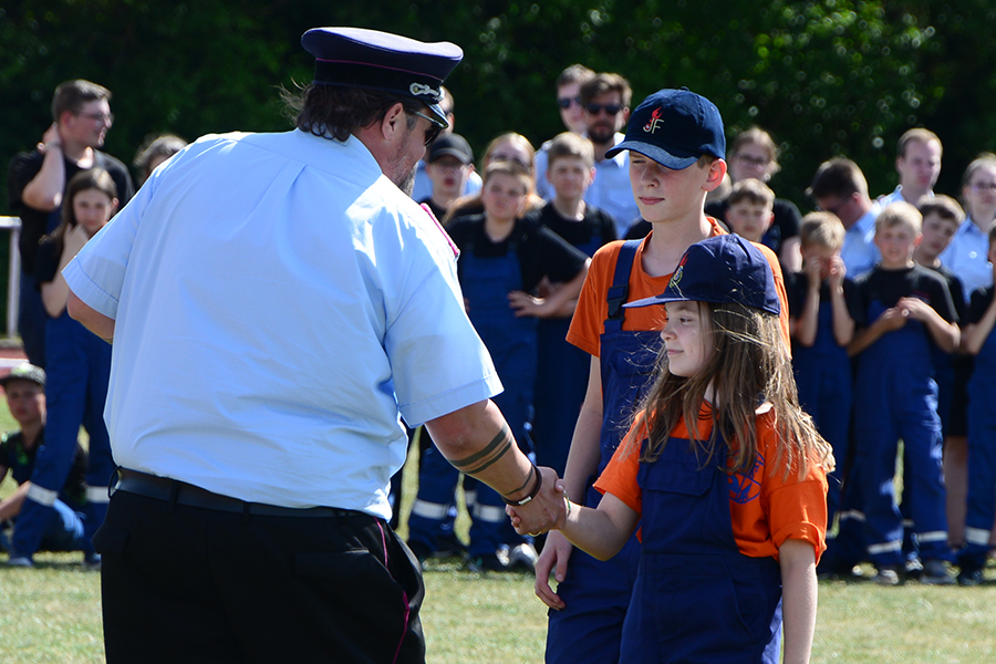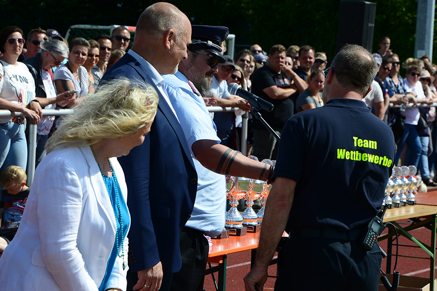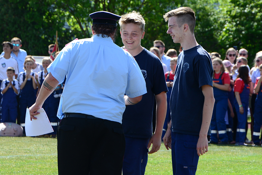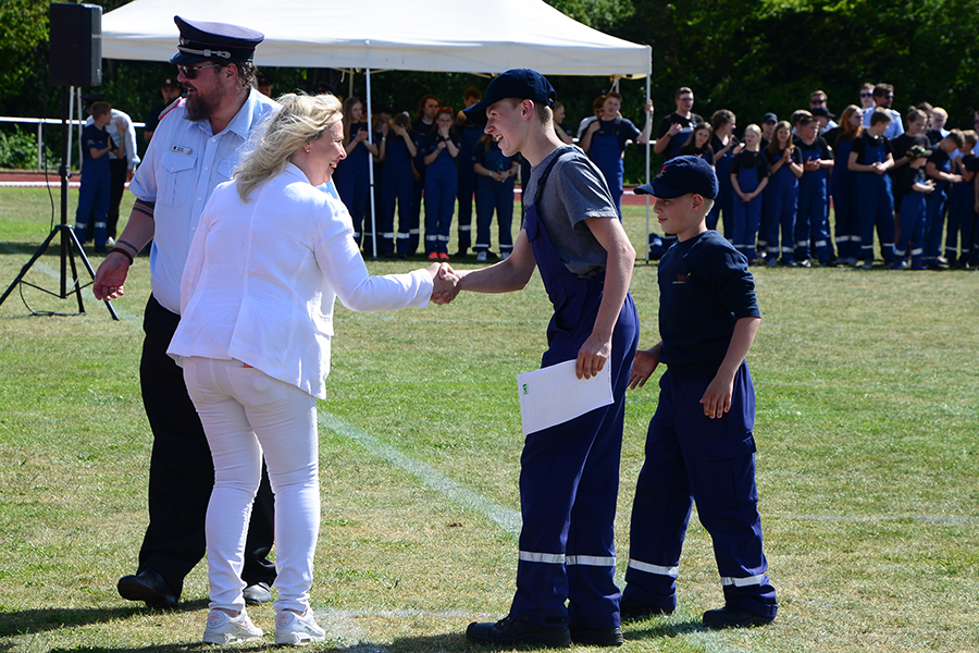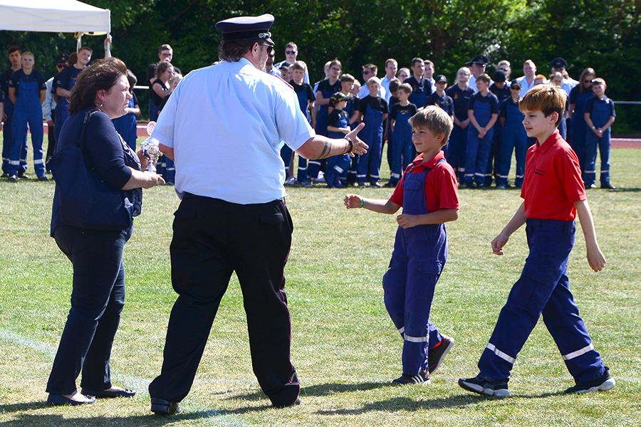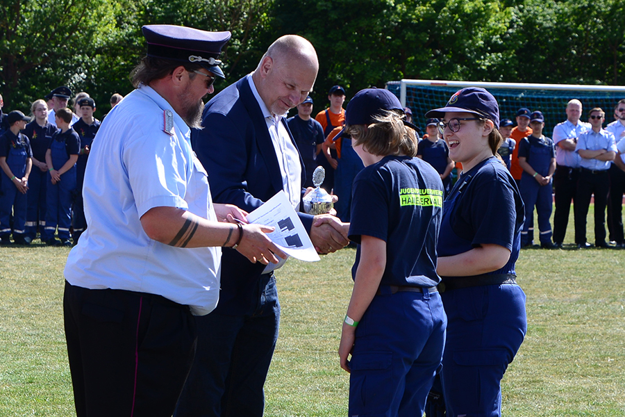 Die Siegerehrung führten Lehrtes Bürgermeister, die Ahltener Ortsbürgermeisterin sowie die Regionsabgeordnete Birgit Ballweg und Yvonne Thies, Teamleiterin Brand- und Katastrophenschutz der Region Hannover, durch. Nachdem der undankbare 20. Platz verlesen worden war, brach Jubel bei den 19 bestplatzierten aus: Sie dürfen zum Bezirksentscheid. Darunter drei Teams aus Rethmar (Sehnde) sowie das Team der Jugendfeuerwehr Hämelerwald. Einen Doppelsieg fuhr die Jugendfeuerwehr Nöpke (Neustadt am Rgb.) ein: Beide Teams belegten den 1. und 2. Platz vor der Jugendfeuerwehr aus Negenborn (Wedemark).