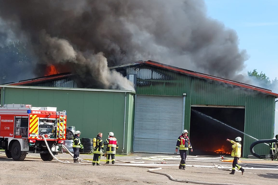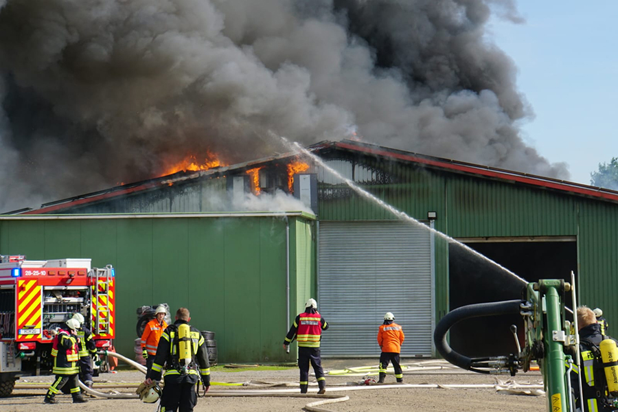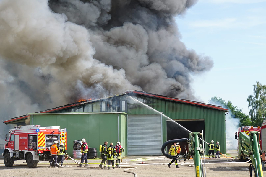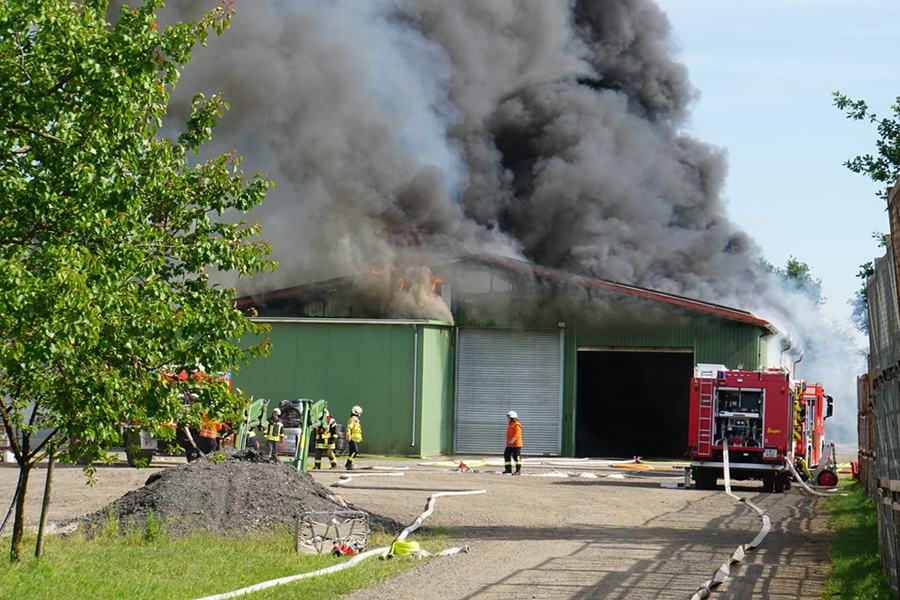 Zu einem Feuer in einer Scheune wurden zahlreiche Feuerwehren der Stadt Burgdorf am heutigen Mittwoch, 15. Juni 2022, in die Straße Im Felde im Burgdorfer Ortsteil Hülptingsen gerufen. Eine große Rauchentwicklung zeugte über mehrere Kilometer von dem Feuer.