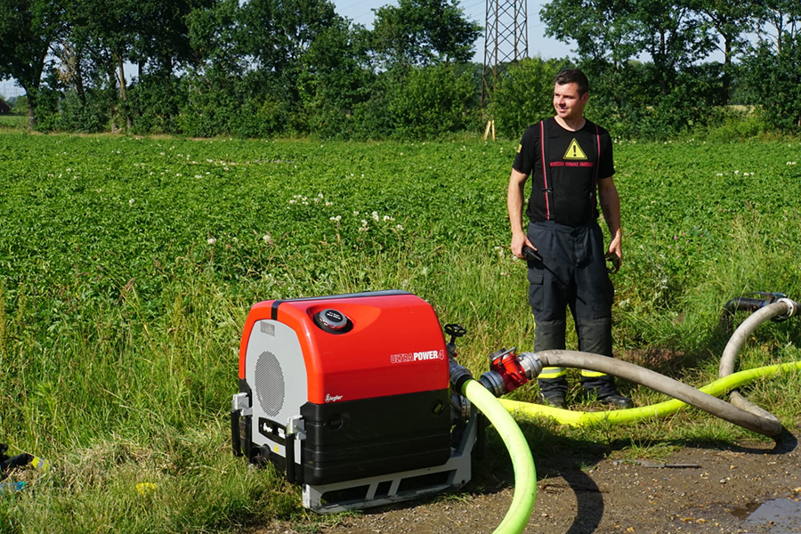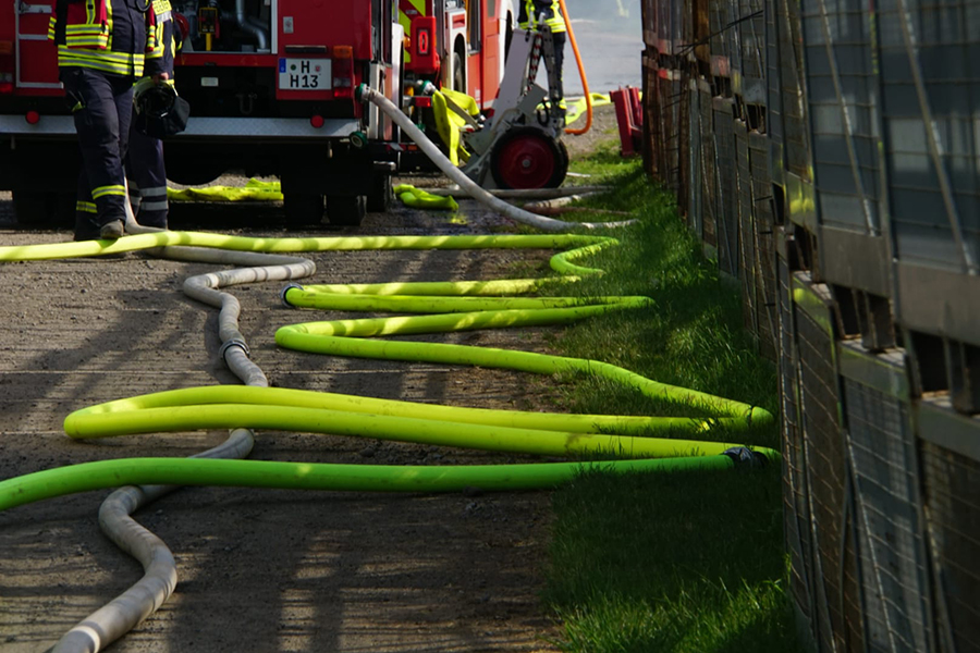Über mehrere hundert Meter war die Versorgungsleitung lang, die mit Verstärkerpumpen ausgestattet für eine ausreichende Wasserversorgung an der Einsatzstelle.