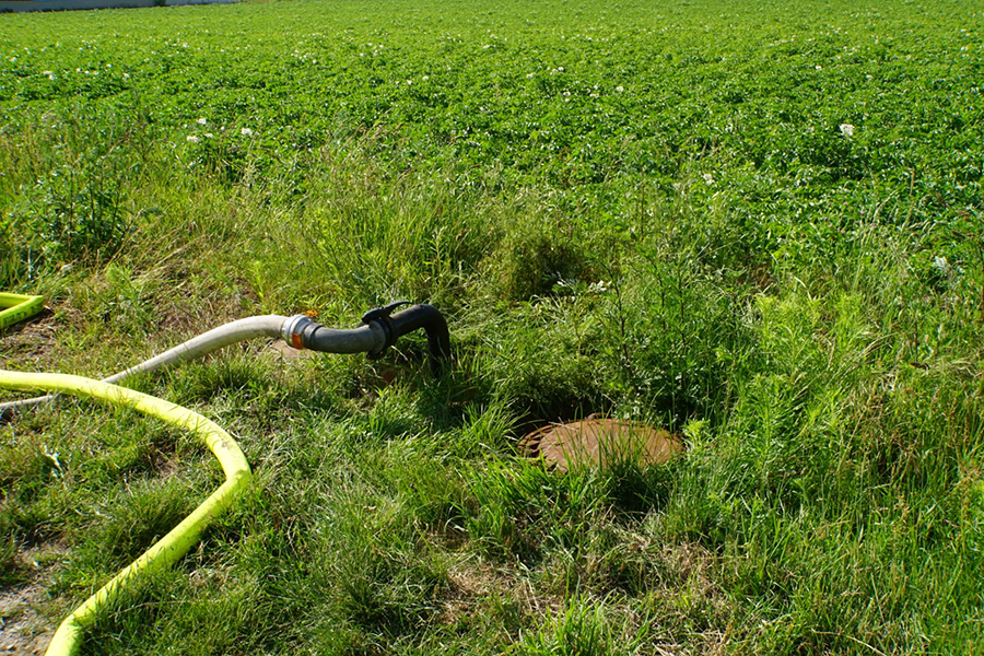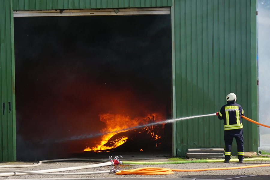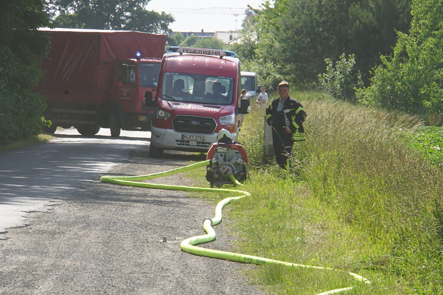 Probleme machte den Brandbekämpfern dann auch die Löschwasserversorgung. Mit den Tanklöschfahrzeugen war zwar zunächst Wasser vorhanden, doch dieses ist bei Feuern in dieser Größenordnung nach wenigen Minuten verbraucht. Über eine lange Wegstrecke musste das Wasser daher an die Einsatzstelle gepumpt werden.