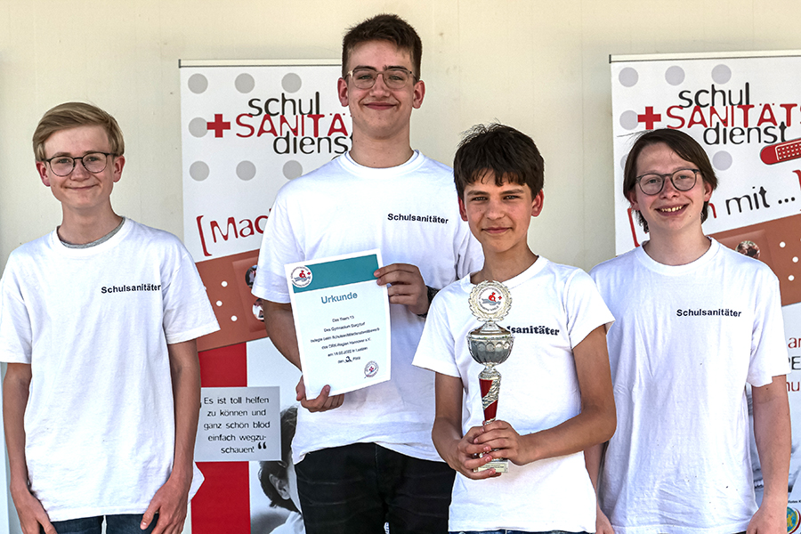 Der diesjährige Regionswettbewerb der Schulsanitäterinnen und Schulsanitäter wurde zum ersten Mal im Park der Sinne in Laatzen durchgeführt. Den ersten Platz sicherte sich das Team des Gymnasiums Lehrte, dicht gefolgt von den beiden Teams des Gymnasiums Burgdorf, die den zweiten und dritten Platz belegten.