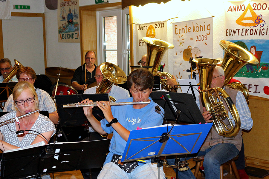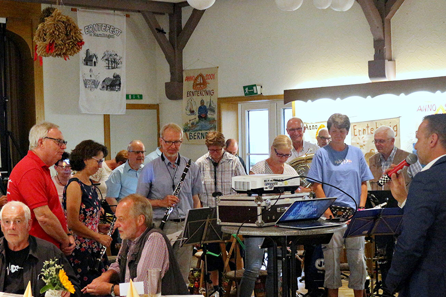 Nachdem die Feuerwehrmusikzugformation Ramlingen/Adelheidsdorf die Veranstaltung musikalisch in Schwung gebracht und Sprecher Timo Wöhler die rund 80 erschienenen Gäste, darunter der Ortsbürgermeister von Ramlingen/Ehlershausen, Wolfram Nolte, sowie 30 Ex-Erntekönigspaare, begrüßt hatte, erfuhr die muntere Gästeschar Näheres zu den Zahlen.