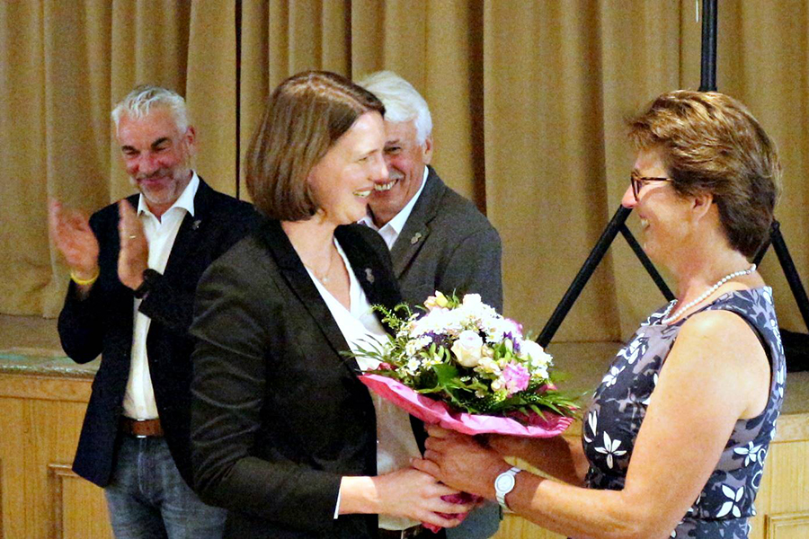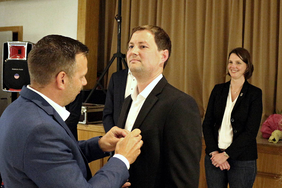 Zur offiziellen Verabschiedung gehörte auch, dass Andreas Buchholz seine Mitgliedsanstecknadel herausrücken musste, die es innerhalb des Vereins nur in limitierter Anzahl gibt. Sie wurde später dem nachrückenden Jörn Hogreve (37 Jahre) von Timo Wöhler ans Revers gesteckt.