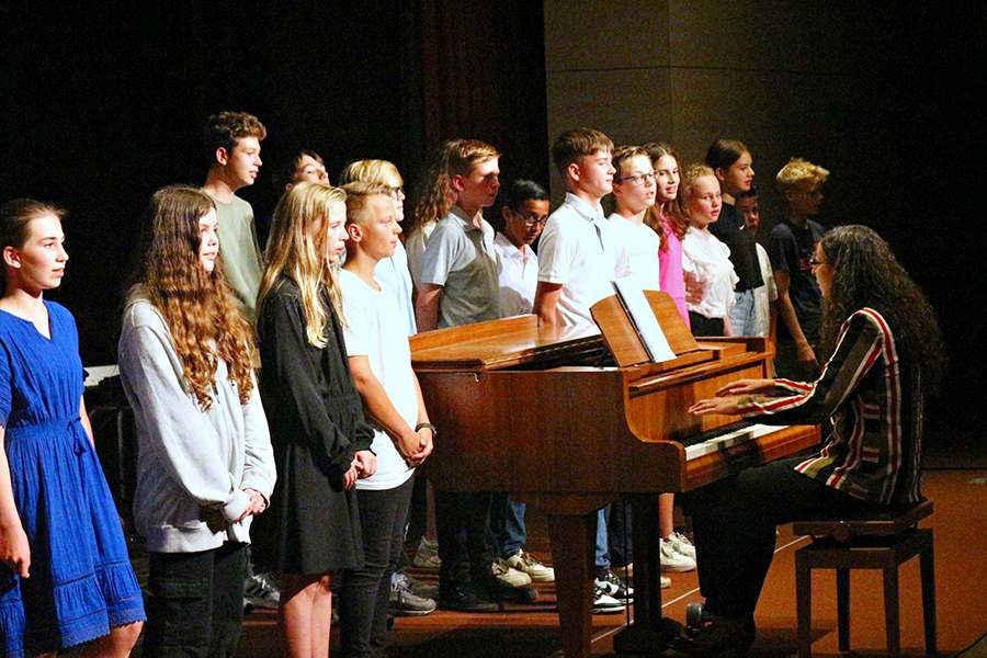 Den Auftakt vor fast vollbesetzten Stuhlreihen machte Julia Koppen mit der Musikklasse 5A, die das Publikum mit Musik und Texten von Rolf Zuckowski und aus der Kinder-TV-Serie "Sesamstraße" zu einem ersten aufbrausenden Beifall anspornte. Ein indianisches Volkslied und der von Lina Larissa Strahl gesungene Song "Was würdest du tun?" mit dem Refrain "Wie allein kann man sein und wie viel Tränen kann man weinen? Wie muss es sein, lässt man alles zurück?" wurden von der Musikklasse 6A unter der Leitung von Almut Stoppe vorgetragen.