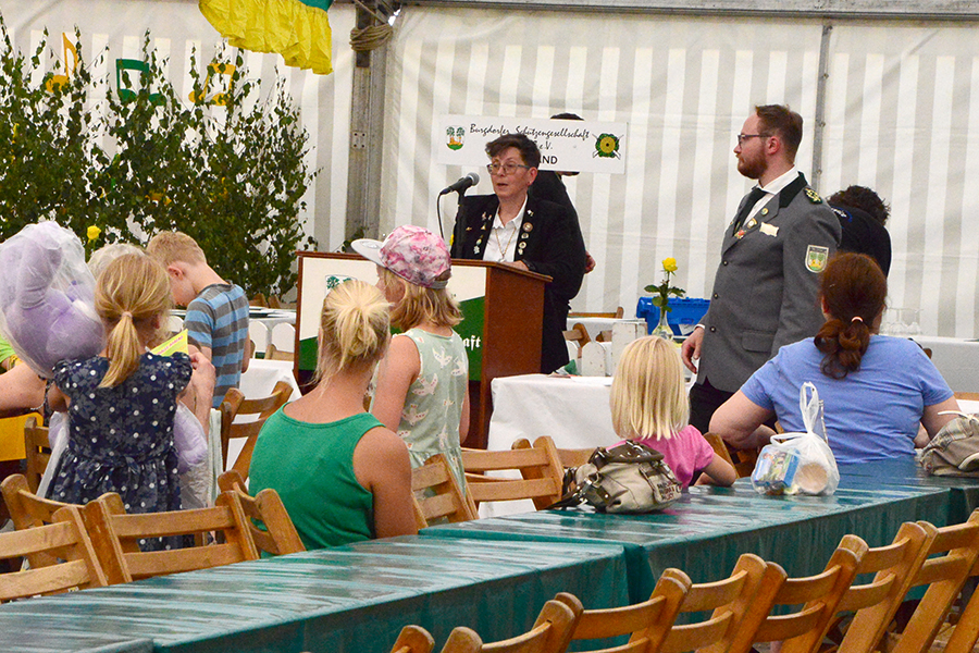 Höhepunkt des Kinderschützenfestes ist die Proklamation des Kinderkönigs. In diesem Jahr hatte sich Tammo Roth durchgesetzt, der seine Königskette durch Cathrin Eichner und Georg Rieger überreicht bekam und somit die erste neue Majestät nach der dreijährigen Durststrecke ist. Der Zehnjährige hatte sich gegen 45 Kontrahenten beim Schießen um die Königswürde durchgesetzt.