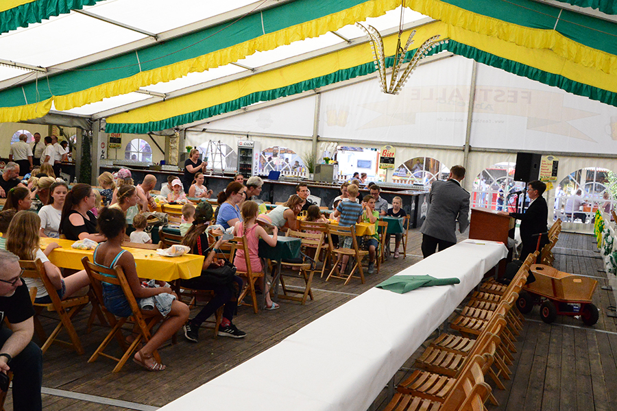 Der Kindernachmittag macht traditionell den Auftakt des Burgdorfer Schützenfestwochenendes. Am heutigen Donnerstag, 23. Juni 2022, stand unter tropischen Temperaturen im Festzelt der Kinderliedermacher Matthias Lück vor rund 35 "Fans" und unterhielt die jüngsten Besucher vor einer tropischen Kulisse.