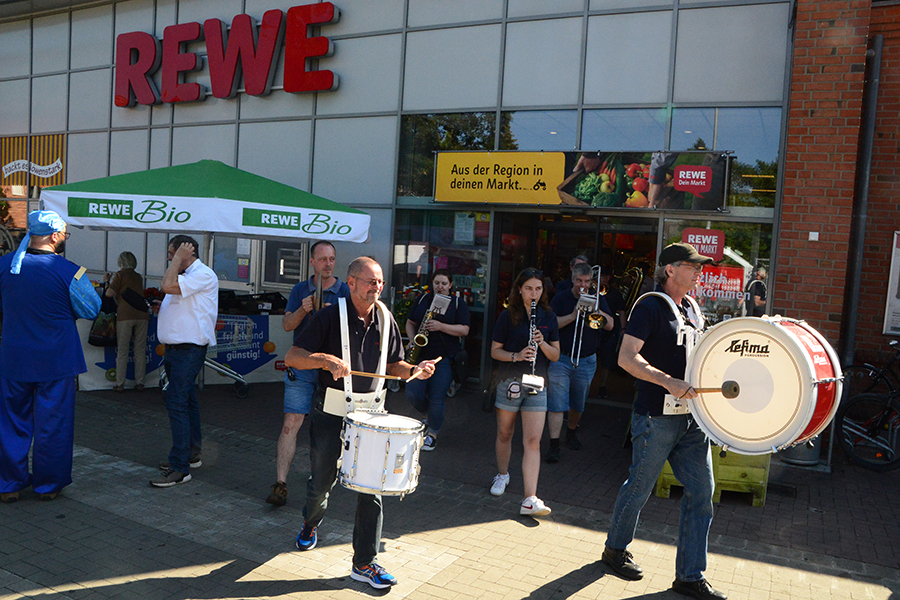 Begleitet wurden die Sammler vom Musikzug Misburg, der an verschiedenen Stellen auch kurze Platzkonzerte gab, so beispielsweise im E-Center in der Uetzer Straße oder dem REWE-Markt an der Marktstraße.