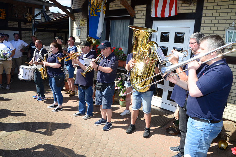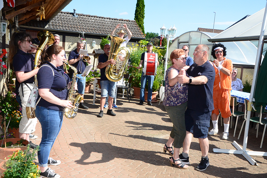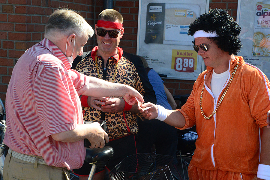 Zur kurzen Pause mit Stärkung lud die Familie Volkmann (Volkmann Bestattungen) in der Wallgartenstraße ein, ehe es weiter ging zum Kreisel in der Markstraße, wo beim Modefachgeschäft Petrick und der Versicherungsagentur Andreas Kanth ein weiterer länger Stopp gemacht wurde.