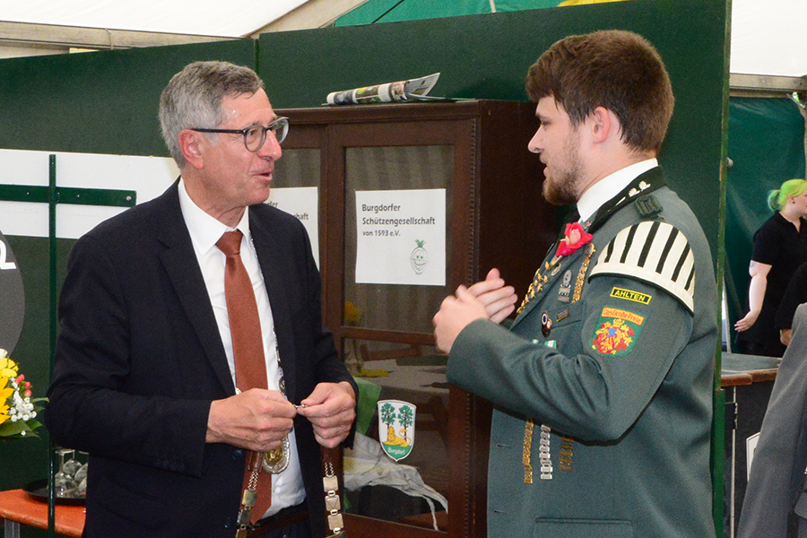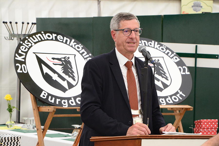 Rund 300 Gäste konnte der Präsident des Kreisschützenverbandes (KSV) Burgdorf, Werner Bösche, im Festzelt auf dem Burgdorfer Schützenplatz begrüßen. Darunter auch Burgdorfs Bürgermeister Armin Pollehn, der in seinen Grußwort insbesondere darauf einging, dass Burgdorf derzeit eine "Schützenhochburg" sei und er seinen Dank an die Schützen aussprach, "dass das Fest so stattfinden kann. Das habt ihr toll gemacht."