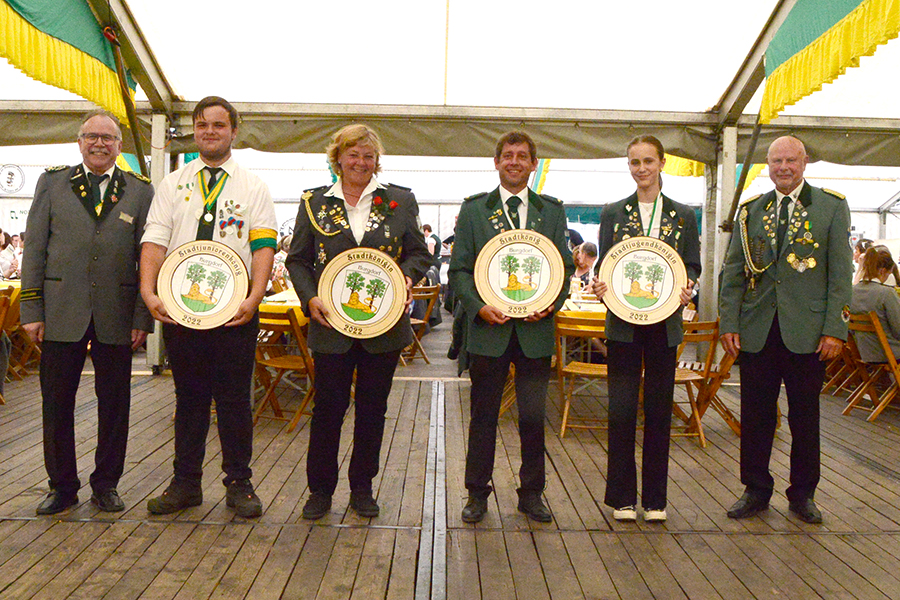Stadtkönig ist Jörg Ehrhardt (Schützenverein Hülptingsen), neue Stadtkönigin ist Ina Brauer (Schützenverein Ehlershausen), neuer Stadtjuniorenkönig ist Timo Schulze-Frieling (Burgdorfer Schützengesellschaft) und neuer Satdtjugendkönig ist Jann Schweer (Schützenverein Hültingsen).