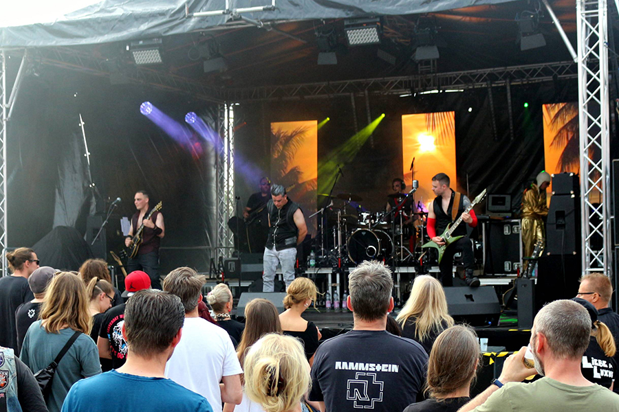 Im letzten Juniwochenende 2022 steckt mal so richtig Musik drin. Während in der Kernstadt von Burgdorf das Fanfarencorps "Wikinger" Burgdorf sowie Feuerwehr- und Schützenspielmannszüge dem großen Burgdorfer Schützen- und Volksfestspektakel "fünfte Jahreszeit" den zünftig musikalischen Rahmen geben, gab sich am gestrigen Freitag, 24. Juni 2022, auf dem Festival-Gelände im Burgdorfer Ortsteil Hülptingsen das brachial-musikalische Sixpack der Rammstein-Coverband "Flugschau" die Ehre.