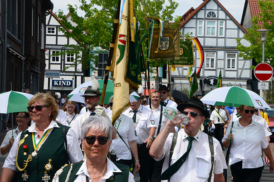 Anschließend konnte er den Befehl zum Start des Großen Festumzuges geben, der durch den Musikzug der Freiwilligen Feuerwehren Burgdorf und Hänigsen, dem Spielmannszug der Burgdorfer Schützengesellschaft, dem Fanfarenzug Thönse, dem Musikzug des Schützen-Corps Lehrte, dem Fanfarencorps "Wikinger" Burgdorf", dem Fanfarenkorps Hannover wie dem Fanfarencorps Laatzen begleitet wurde.