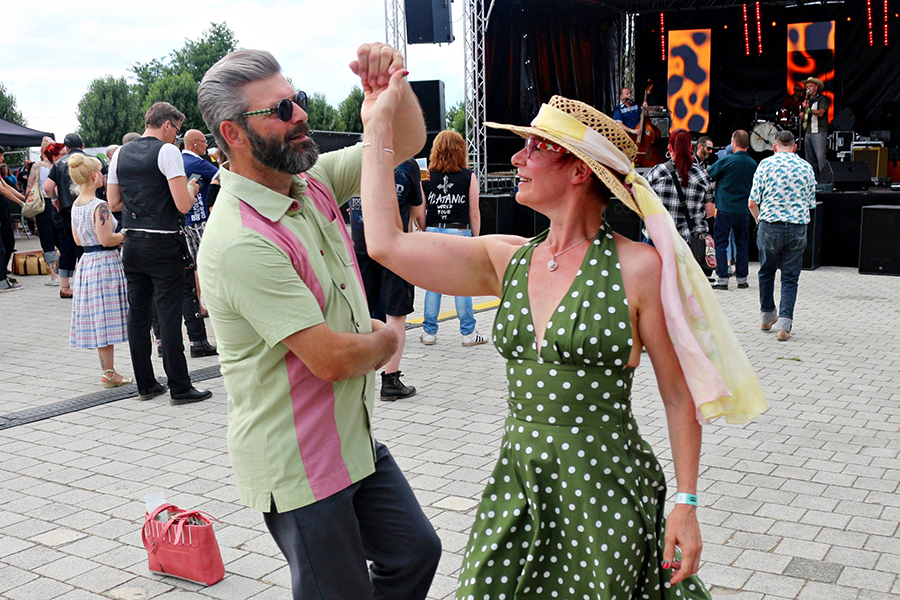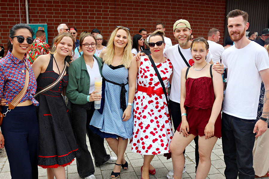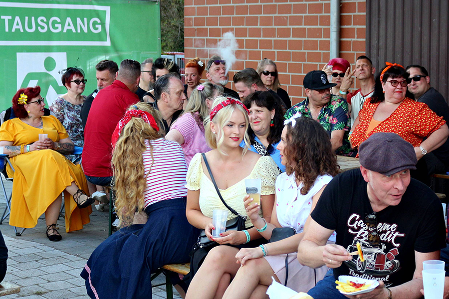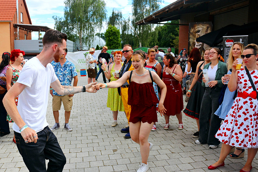 Nachdem am vergangenen Freitag "Flugschau" durchgestartet war, wurde es am gestrigen Sonnabend, 25. Juni 2022, auf dem anschließenden Backfire-Festival in Hülptingsen noch heißer. Heißer nicht nur im Sinne von Sommerhitze. Deshalb suchten die Rock’n’Roll- und Rockabilly-Fans bei gut gekühlten Getränken in anfangs spärlichen Schattenplätzen nach Abkühlung. Etliche Festivalbesucher waren für ihre Musik und das damit verbundene Lebensgefühl extra aus Hamburg, Berlin und anderen Gegenden nach Burgdorf gekommen. Und einige von ihnen ließen sich im wieder sehr beliebten Vintage-Look blicken.