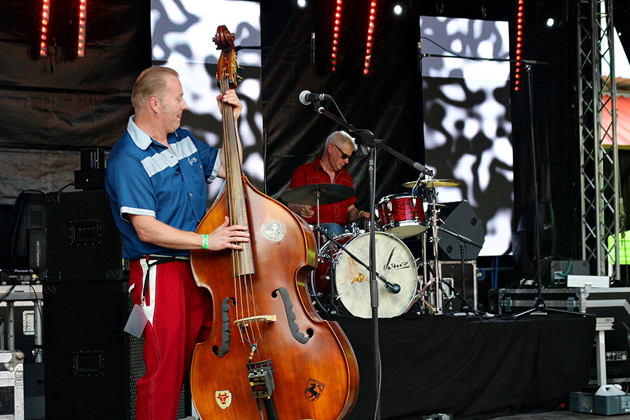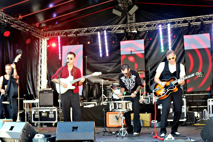Musikalisch wurden die Temperaturen noch ein wenig in die Höhe geschraubt, als zu Beginn des Konzert-Events die "Rhythm Torpedoes" aus dem hessischen Großraum Marburg/Gießen in Hülptingsen einschlugen. Die Rockabilly-Kapelle hat sich vor mehr als zehn Jahren der Musik der 1950er Jahre verschrieben und präsentiert Varianten sowie Eigenkompositionen mit Volldampf.